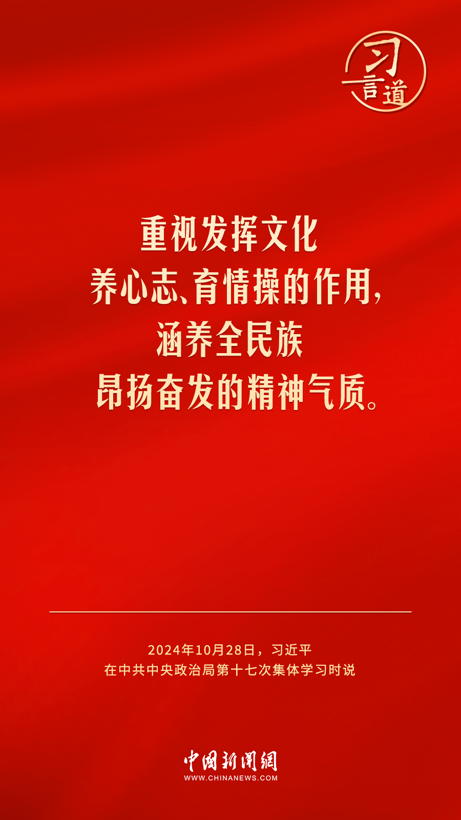 中共中央政治局10月28日下午就建設(shè)文化強(qiáng)國(guó)進(jìn)行第十七次集體學(xué)習(xí)。中共中央總書(shū)記習(xí)近平在主持學(xué)習(xí)時(shí)強(qiáng)調(diào)——