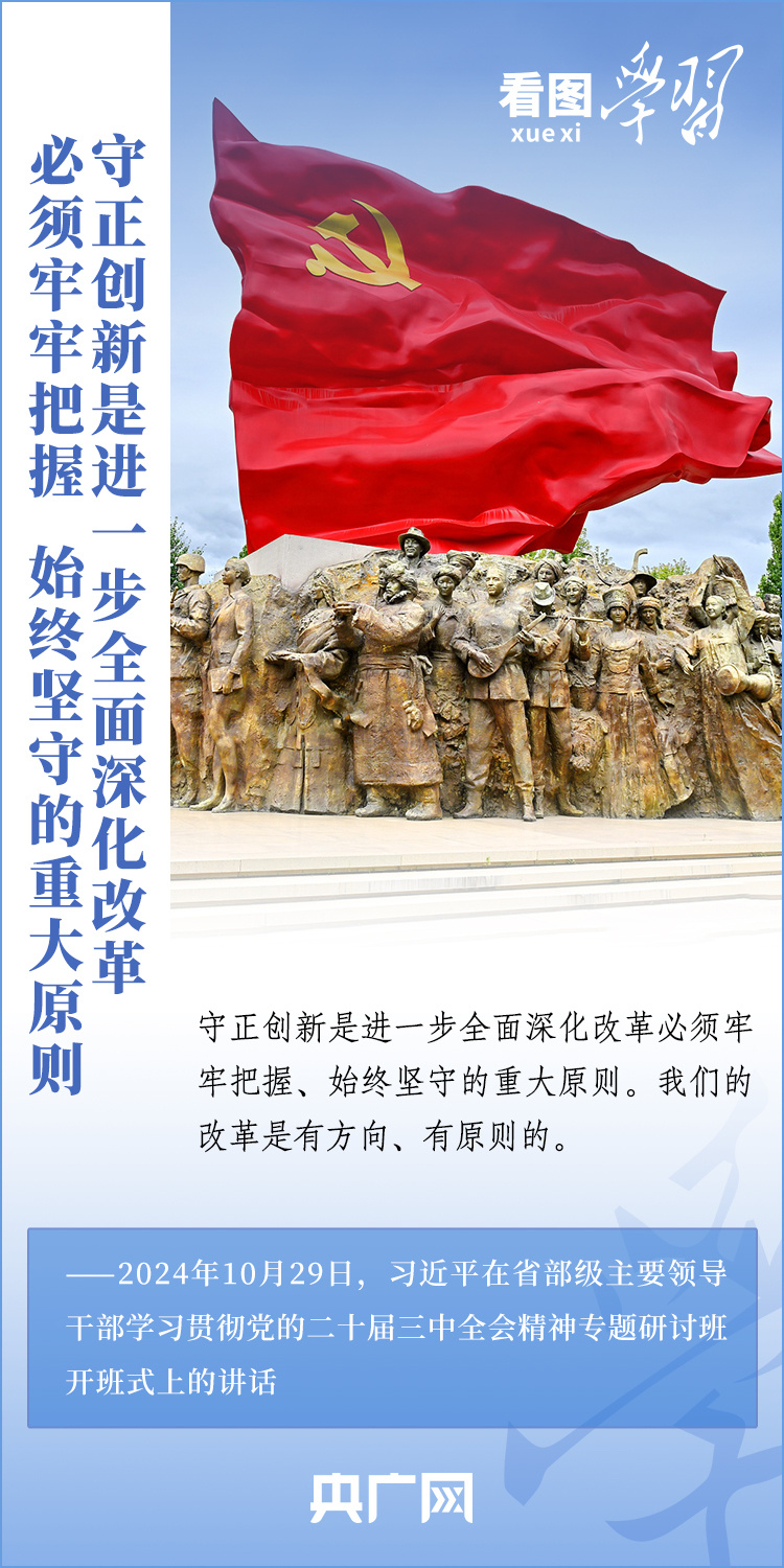 改革只有進(jìn)行時(shí),沒有完成時(shí)。10月29日,省部級(jí)主要領(lǐng)導(dǎo)干部學(xué)習(xí)貫徹黨的二十屆三中全會(huì)精神專題研討班在中央黨校(國(guó)家行政學(xué)院)開班。習(xí)近平總書記發(fā)表重要講話,就進(jìn)一步全面深化改革的一系列重大問(wèn)題進(jìn)行深刻闡釋,強(qiáng)調(diào)要牢牢把握、始終堅(jiān)守“守正創(chuàng)新”這一重大原則,把握好“四對(duì)關(guān)系”,奮力打開改革發(fā)展新天地。一起來(lái)學(xué)習(xí)!