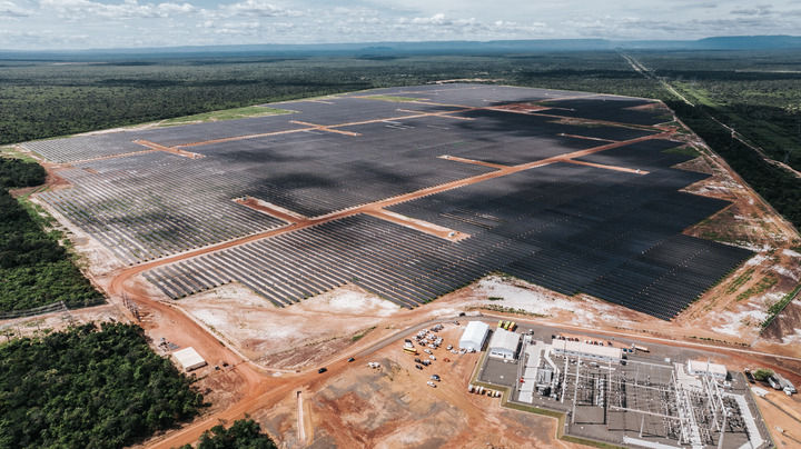這是2024年6月7日在巴西皮奧伊州拍攝的由中國國家電力投資集團公司(國家電投)巴西公司投資并主導(dǎo)建設(shè)的馬蘭加圖光伏電站(無人機照片)。