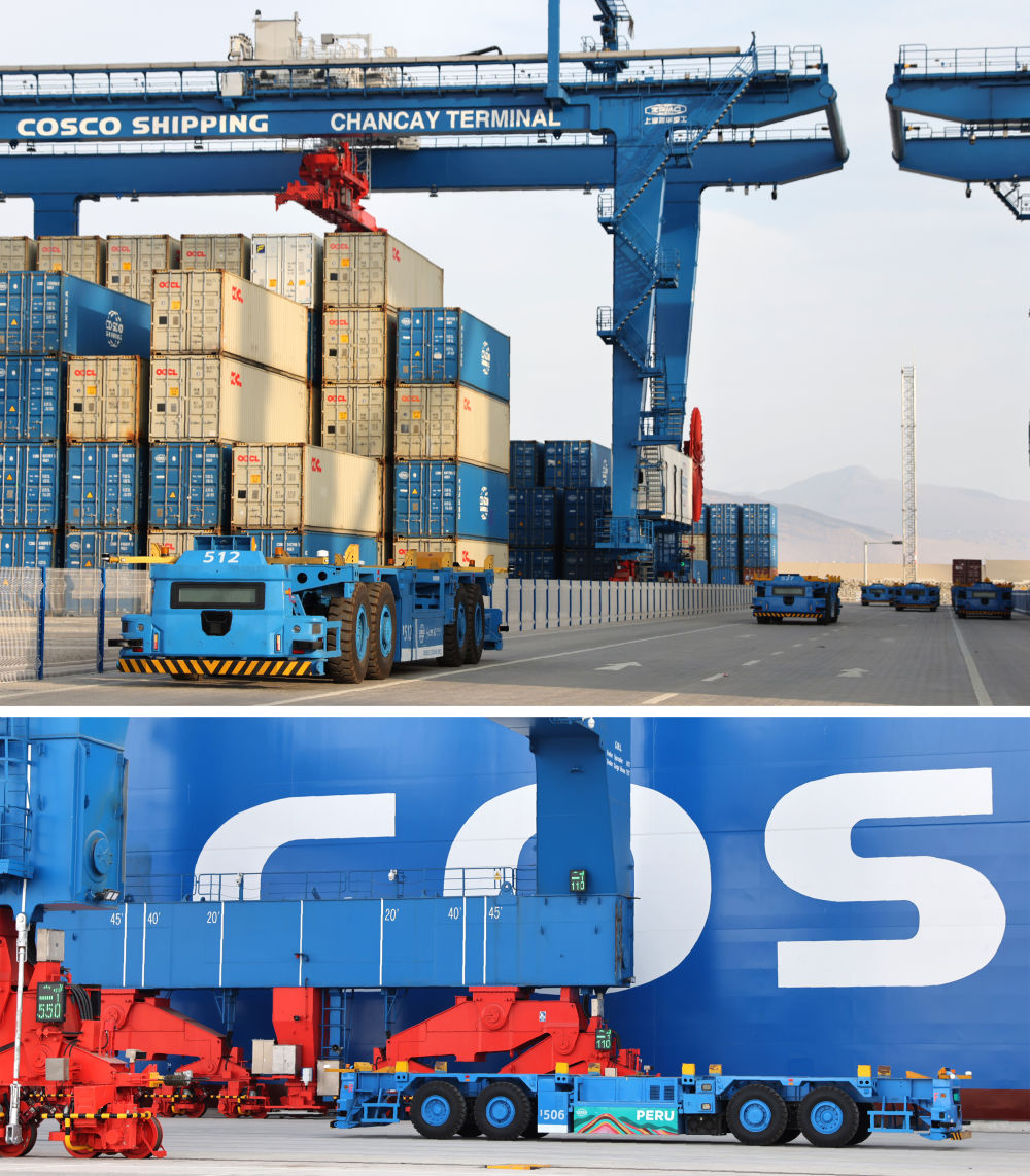 2024年11月9日,集裝箱船駛入秘魯錢凱港自動化碼頭。(上海振華重工供圖)