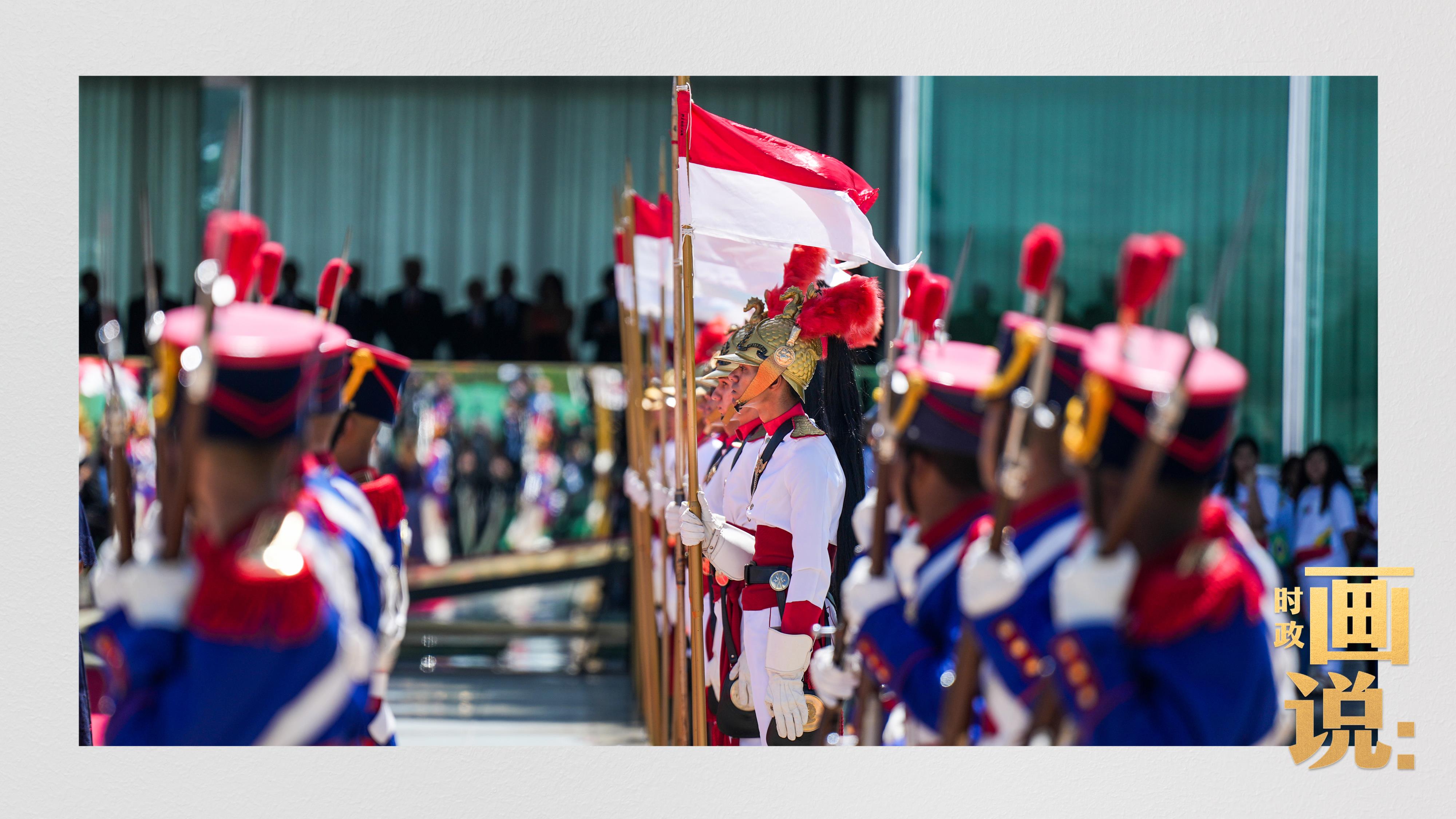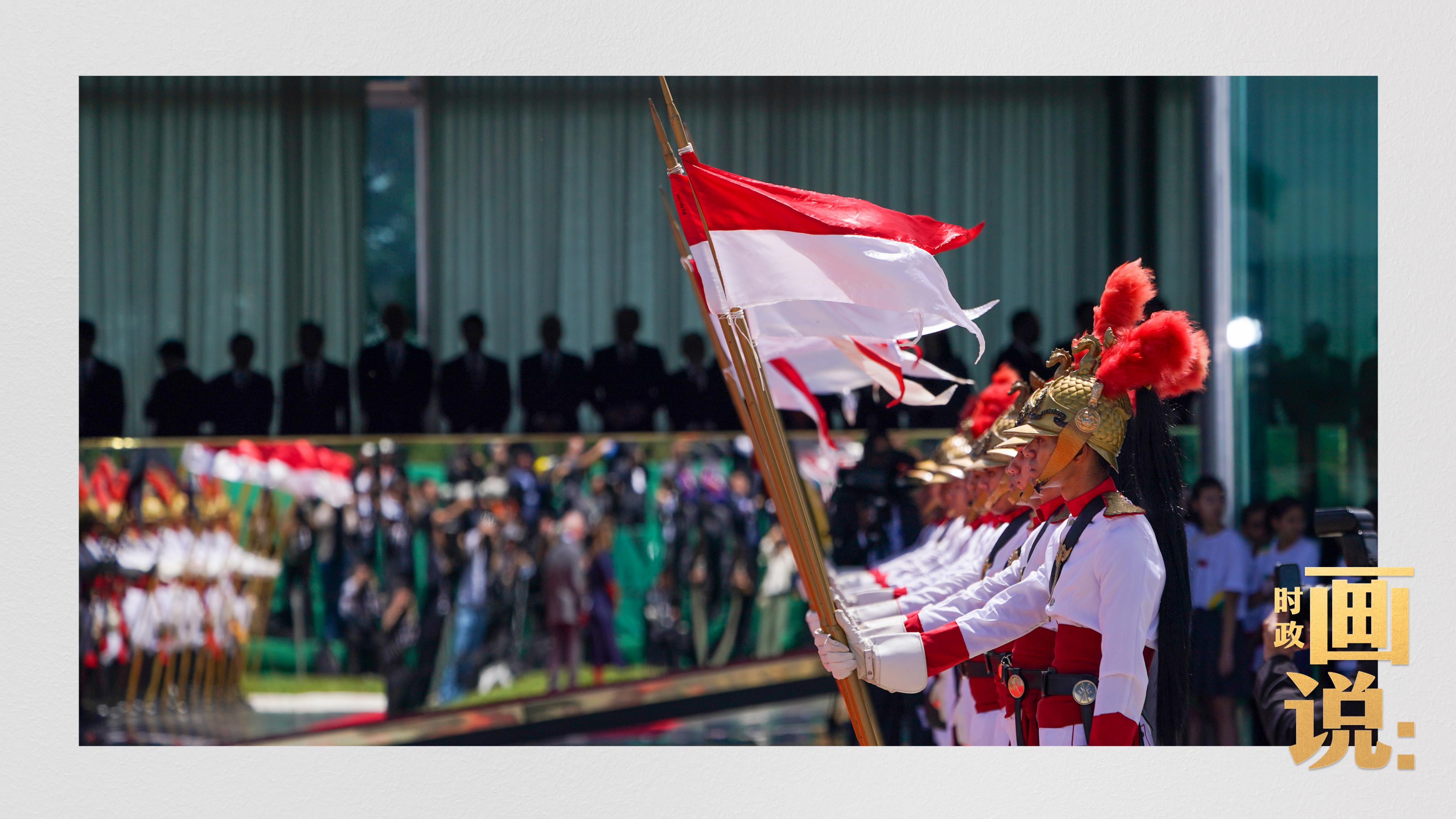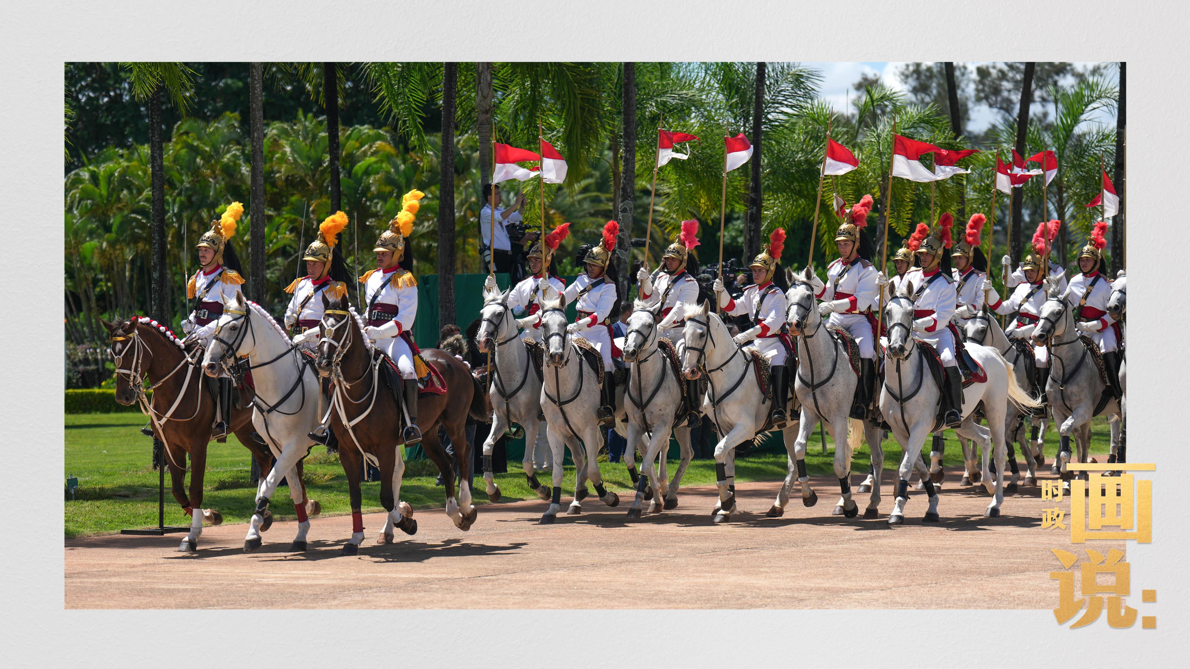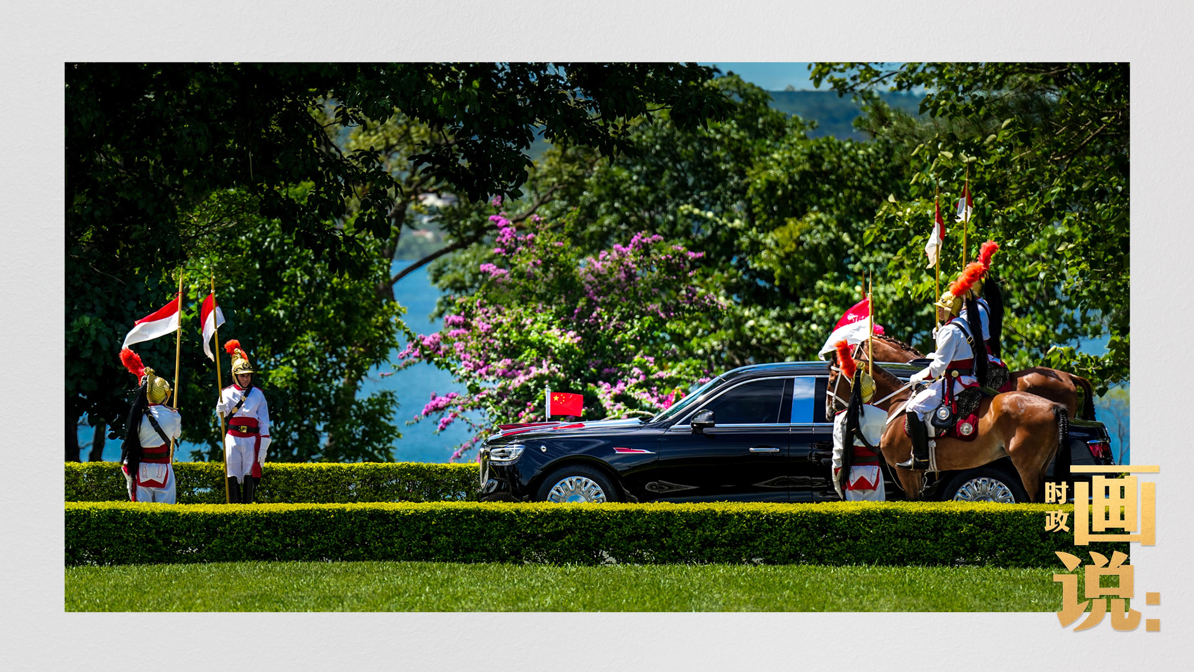 騎兵護衛(wèi)習近平主席專車抵達儀式現(xiàn)場,巴西藝術家用中文深情唱響中國經典民歌《我的祖國》,現(xiàn)場氣氛隆重熱烈。