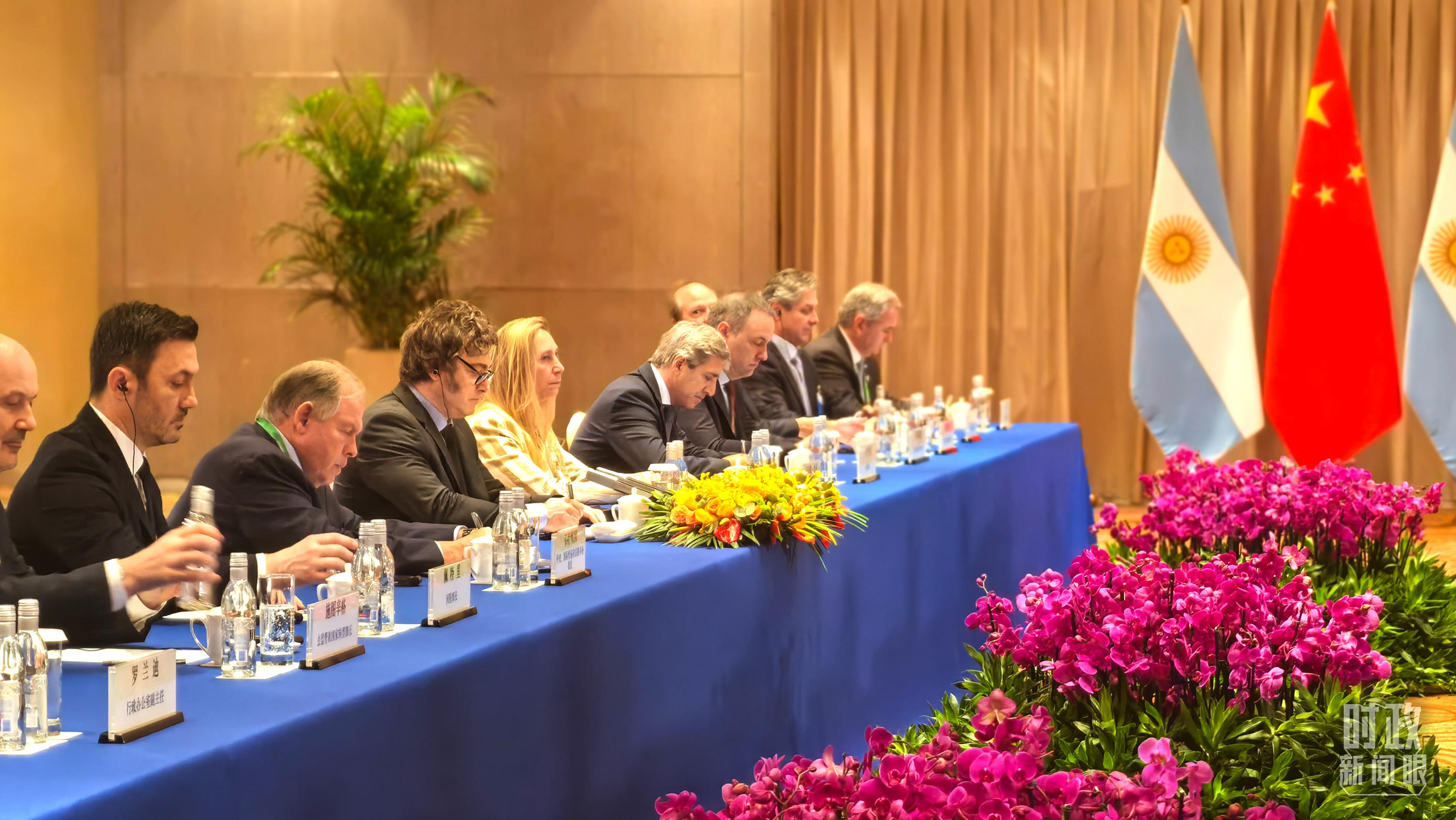 習(xí)主席會(huì)見阿根廷總統(tǒng)米萊現(xiàn)場(chǎng)。(總臺(tái)央廣記者潘毅拍攝)