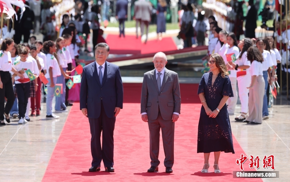 當(dāng)?shù)貢r(shí)間11月20日,中國(guó)國(guó)家主席習(xí)近平同巴西總統(tǒng)盧拉舉行會(huì)談。圖為會(huì)談前,巴西總統(tǒng)盧拉在首都巴西利亞為習(xí)近平舉行隆重歡迎儀式。中新社記者 盛佳鵬 攝