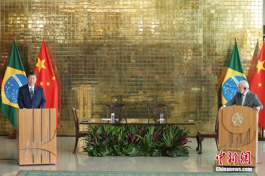 當(dāng)?shù)貢r(shí)間11月20日,中國(guó)國(guó)家主席習(xí)近平在巴西利亞總統(tǒng)官邸同巴西總統(tǒng)盧拉舉行會(huì)談。會(huì)談后,兩國(guó)元首共同會(huì)見記者。中新社記者 盛佳鵬 攝