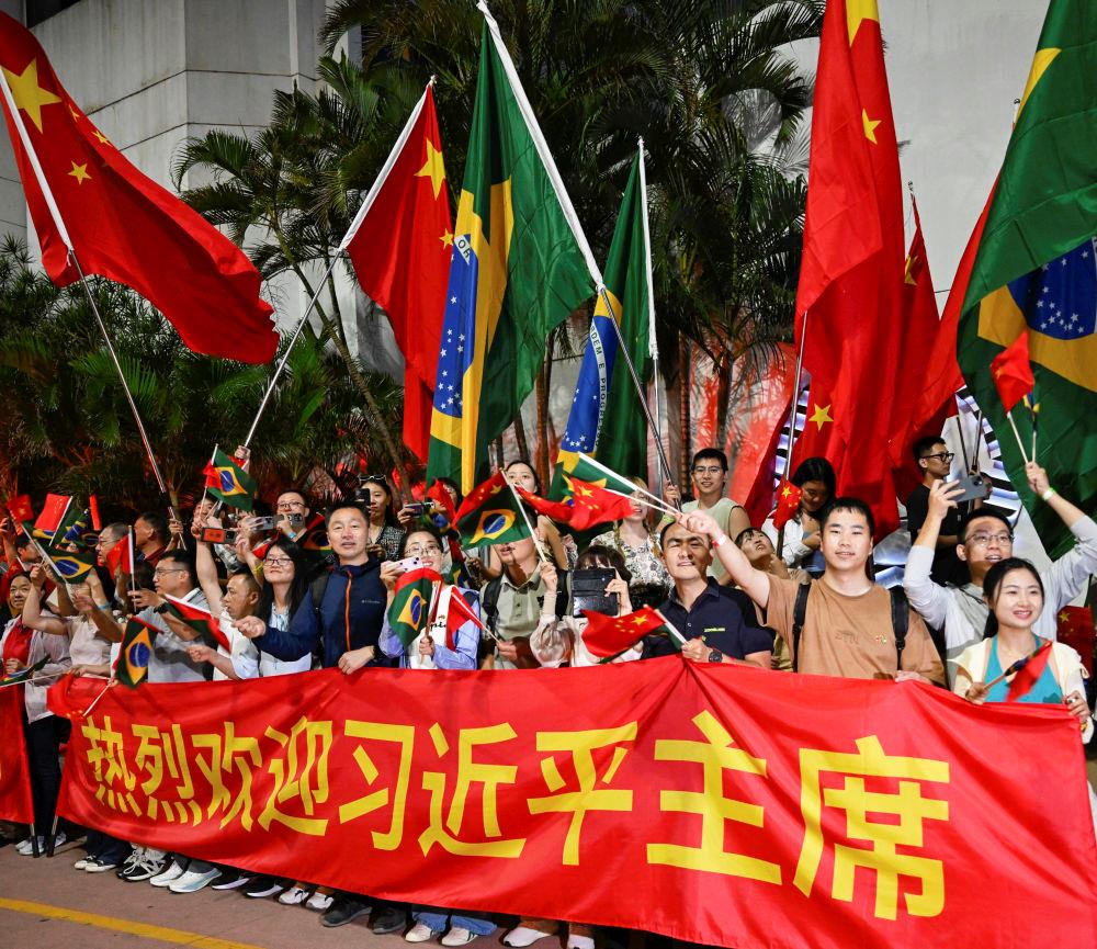 2024年11月,習近平主席在巴西里約熱內(nèi)盧出席二十國集團領導人第十九次峰會期間,里約熱內(nèi)盧街頭熱情的歡迎人群。