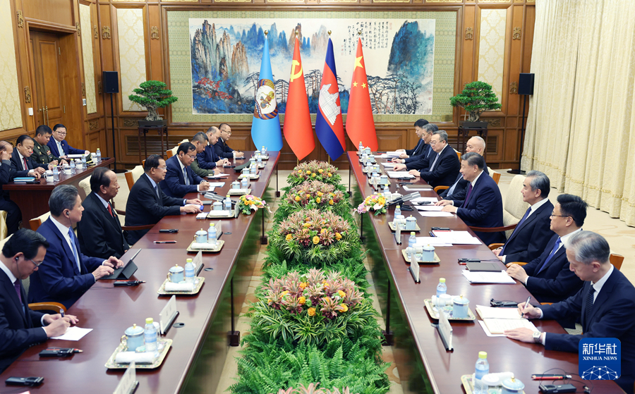 12月3日,中共中央總書記、國(guó)家主席習(xí)近平在北京釣魚臺(tái)國(guó)賓館同柬埔寨人民黨主席、參議院主席洪森舉行會(huì)談。新華社記者 姚大偉 攝