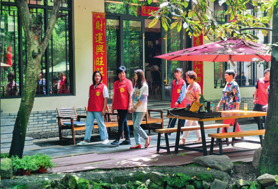 走進(jìn)白沙村,只見柏油馬路邊是排列齊整的黃色小洋樓,家家戶戶門口都有綠植點(diǎn)綴,村里建起健身廣場、籃球場、游泳池、羽毛球場等大型運(yùn)動(dòng)場所。2024年春節(jié),村里組織第三次拍攝全村福,上千村民齊聚在一起,用鏡頭定格幸福笑容。