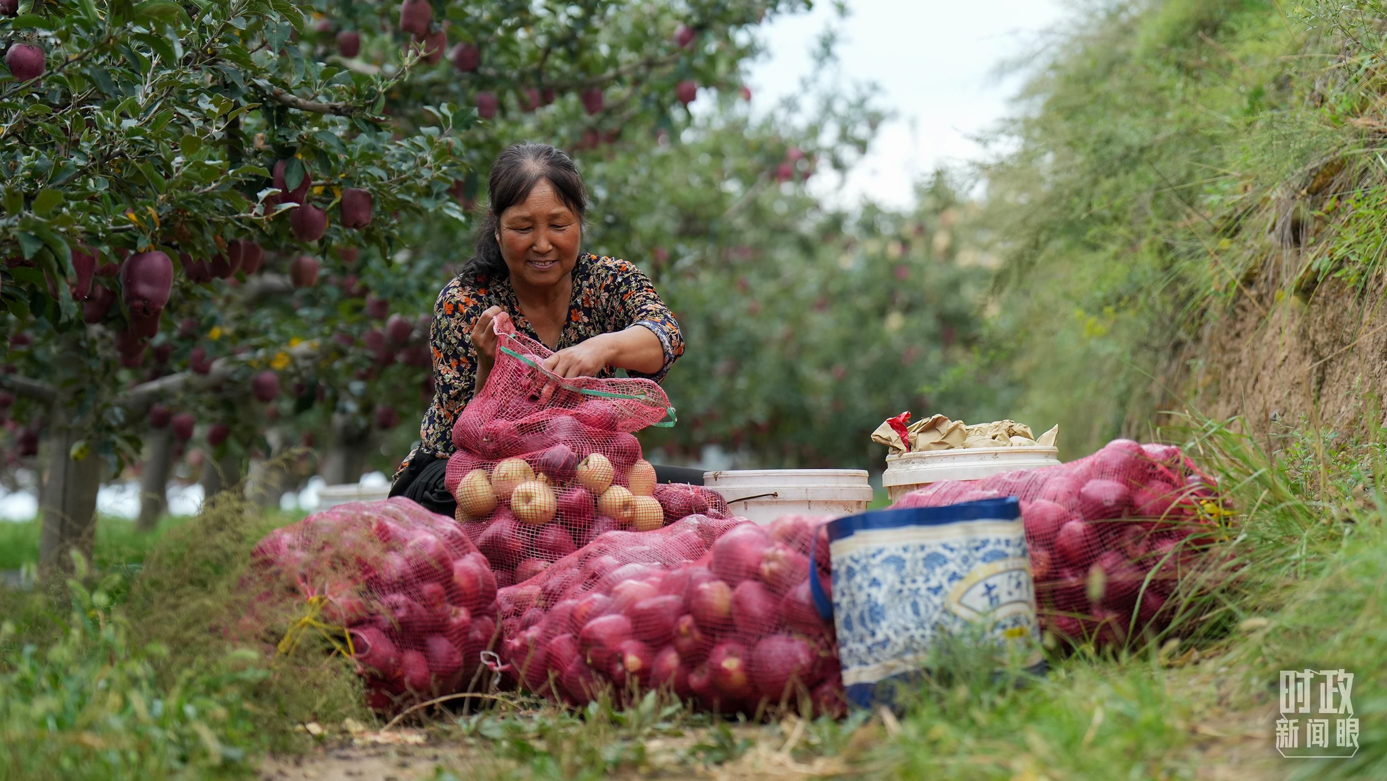 甘肅天水的花牛蘋果已經(jīng)成為當(dāng)?shù)厝罕姷摹吧鷳B(tài)果”“致富果”。(總臺記者李晉拍攝)