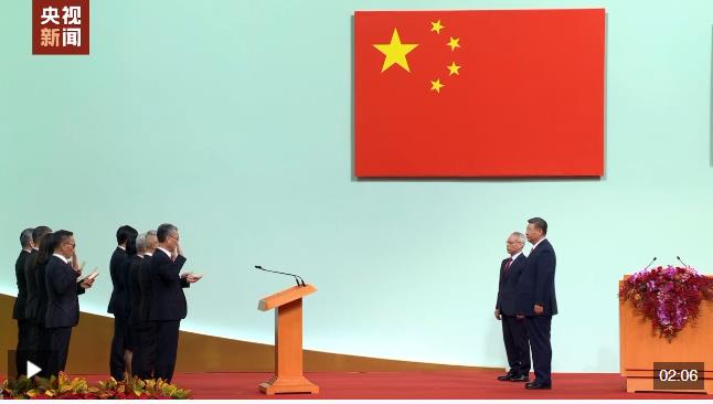 習(xí)近平主席監(jiān)誓,澳門(mén)特別行政區(qū)第六屆政府主要官員在岑浩輝帶領(lǐng)下宣誓就職。