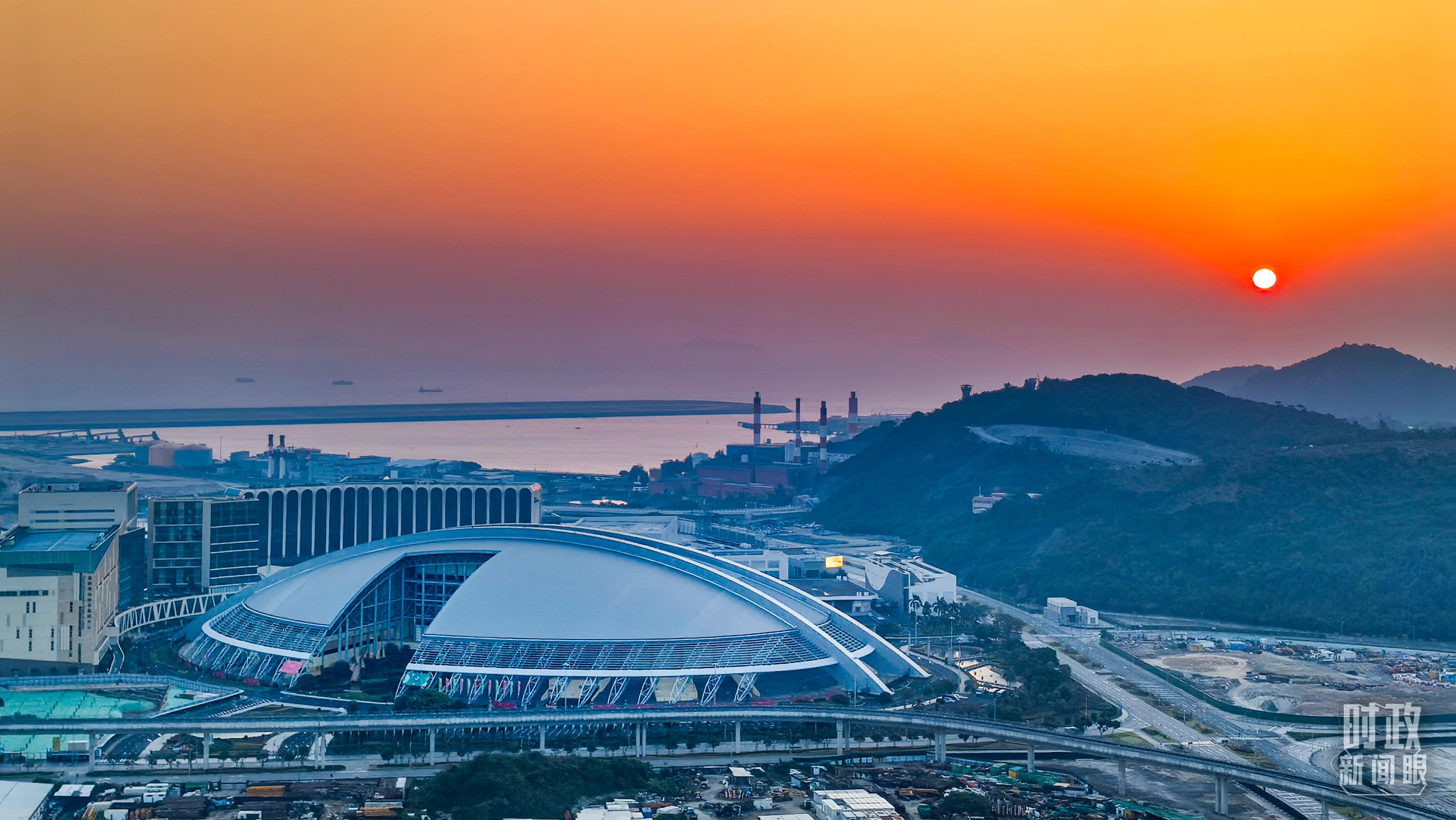 12月20日,朝霞映襯下的澳門東亞運(yùn)動(dòng)會(huì)體育館。(總臺(tái)央視記者張垚拍攝)