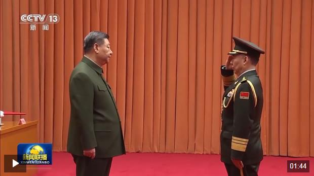 上午10時(shí)許,晉銜儀式在莊嚴(yán)的中華人民共和國國歌聲中開始。中央軍委副主席張又俠宣讀了中央軍委主席習(xí)近平簽署的晉升上將軍銜命令。中央軍委副主席何衛(wèi)東主持晉銜儀式。