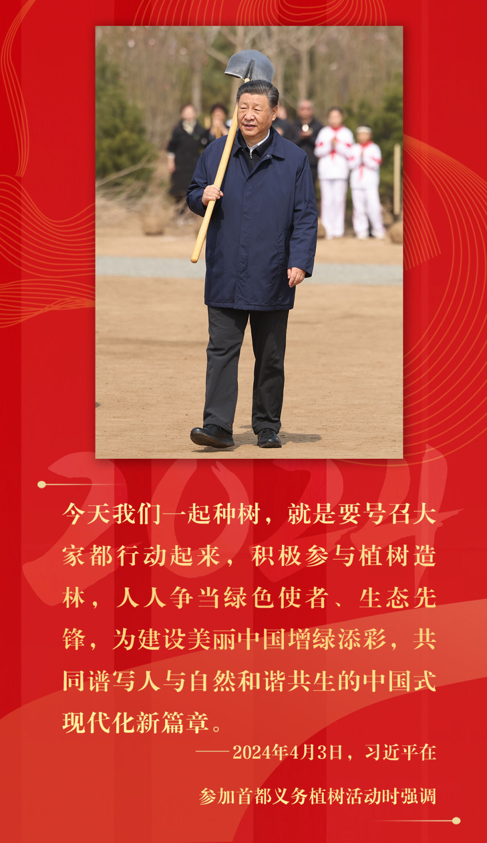 2024年,習(xí)近平總書記在參加義務(wù)植樹、基層考察調(diào)研、聽取工作匯報(bào)等場合,多次作出重要指示,持續(xù)推動(dòng)生態(tài)文明建設(shè)。保護(hù)綠水青山,建設(shè)美麗中國,是總書記心間始終的牽掛。