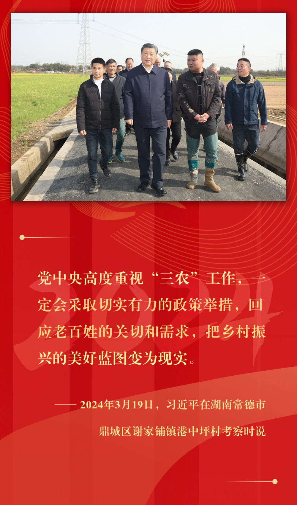 堅持城鄉(xiāng)融合發(fā)展、持續(xù)深化農(nóng)村改革、支持強農(nóng)惠農(nóng)富農(nóng)、拓寬農(nóng)民增收渠道、強化農(nóng)業(yè)科技和裝備支撐、確保糧食和重要農(nóng)產(chǎn)品穩(wěn)產(chǎn)保供……2024年,習近平總書記在基層考察期間,持續(xù)關注鄉(xiāng)村振興,多次提出重要指示,落子關鍵處、科學謀布局,千方百計推動農(nóng)業(yè)增效益、農(nóng)村增活力、農(nóng)民增收入。