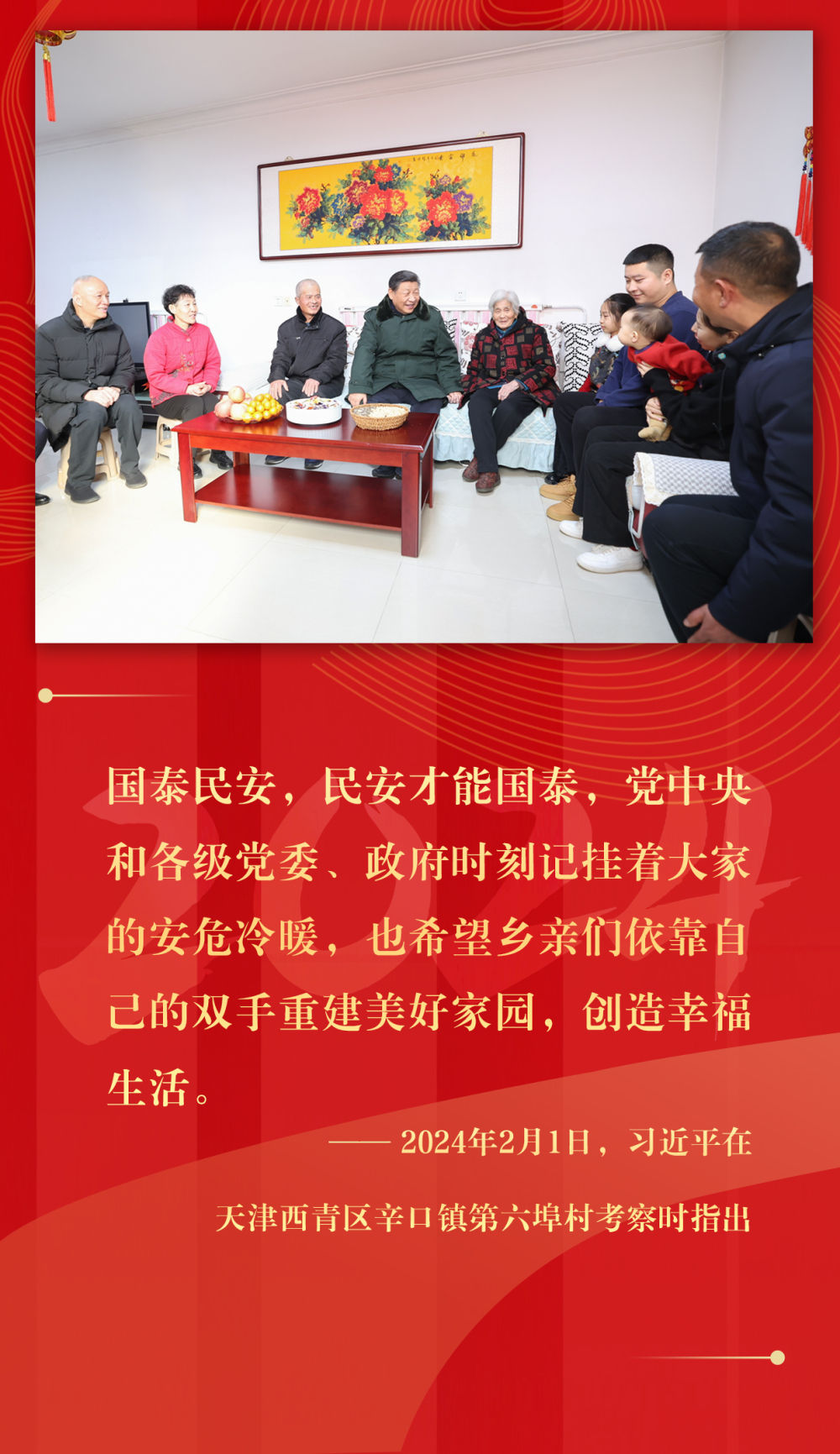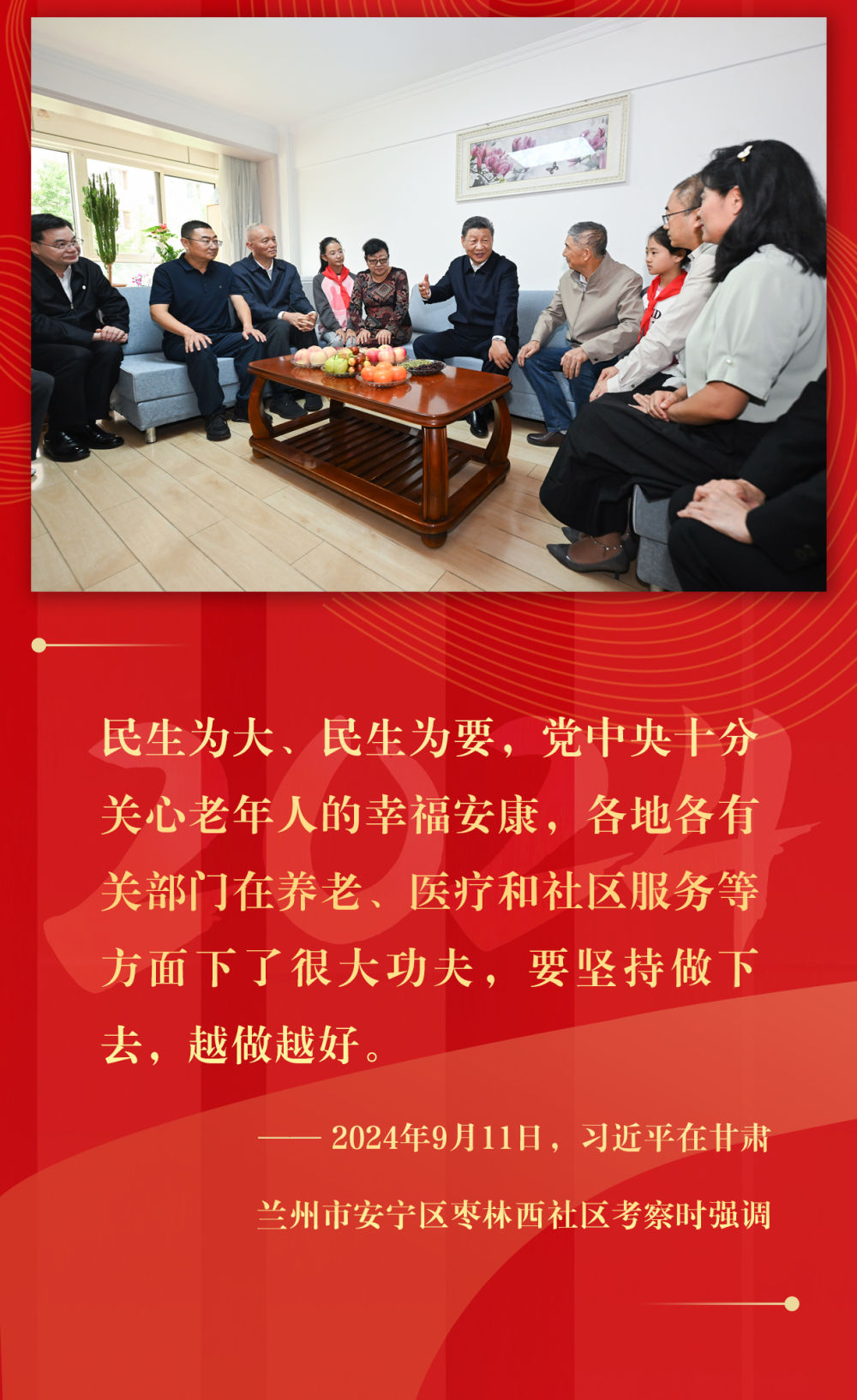 悠悠民生事,枝葉總關(guān)情。2024年,總書記考察步履不停,時(shí)刻記掛群眾冷暖:災(zāi)區(qū)災(zāi)后重建工作、老舊小區(qū)改造、解決“急難愁盼”、服務(wù)“一老一小”……人民至上的理念和行動(dòng),溫暖著百姓的心。