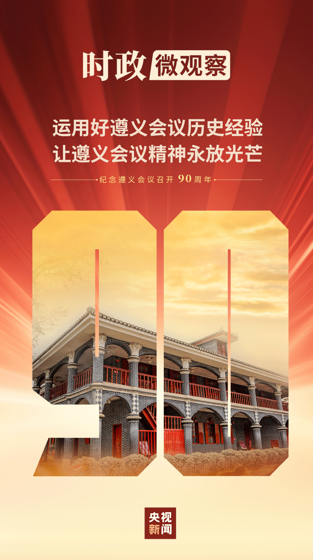 我們紀(jì)念遵義會議召開90周年,就是要銘記歷史、牢記啟迪,更加緊密地團(tuán)結(jié)在以習(xí)近平同志為核心的黨中央周圍,全面貫徹習(xí)近平新時代中國特色社會主義思想,深入貫徹黨的二十大和二十屆二中、三中全會精神,為以中國式現(xiàn)代化全面推進(jìn)強(qiáng)國建設(shè)、民族復(fù)興偉業(yè)而努力奮斗。