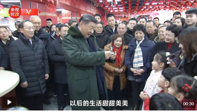 23日上午,正在遼寧考察的習(xí)近平總書記來到沈陽大東副食品商場,了解節(jié)日期間市場供應(yīng)情況。孩子們見到習(xí)爺爺十分高興,熱情地給習(xí)爺爺遞上新買的糖果。習(xí)近平接下糖果,親切地說,你們的糖我收下,吃了你們的糖心里很甜,希望你們的生活像糖果一樣甜甜美美。