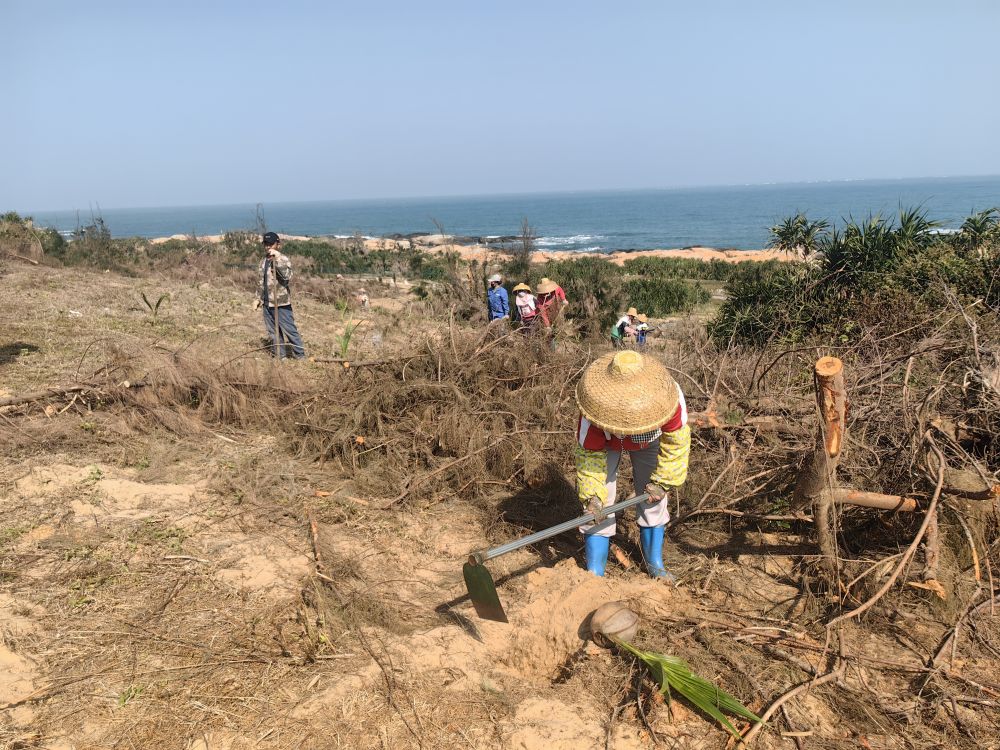 “和原來的木麻黃樹相比,椰子樹不僅抗風(fēng)能力更強,也更加美觀?!惫と隧n吉衍嫻熟地將一鍬紅土鏟到剛種下的椰苗根部,并輕輕拍打夯實,“這一片椰林要種280畝,我們每天干八九個小時,這幾天就要種完?!?/p>