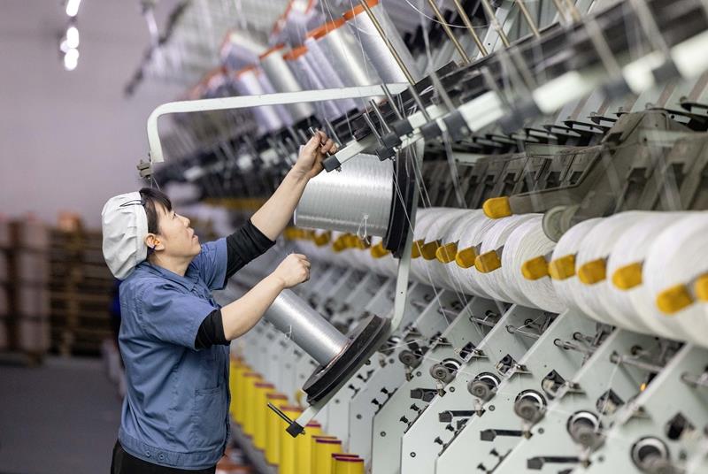 △新年伊始,工人在位于江蘇泰州市海陵區(qū)的一家公司生產(chǎn)車間里作業(yè)。