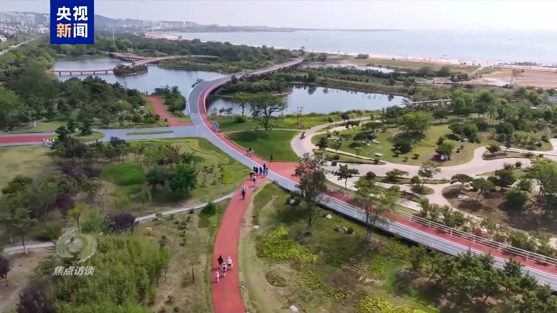 日照山海發(fā)展集團黨委副書記、總經(jīng)理 秦緒建:經(jīng)過十幾輪論證,那些專家,包括年輕的設(shè)計人員,包括周邊村里的老百姓,都參與這個論證了。后來我們就采用了舊村改造拆下來的長條石,稍微在河道底下鋪了鋪,然后這個地方,有水的時候水可以過去,沒水的時候,騎自行車、跑步都可以過得去,最大程度上保護我們這個生態(tài)。