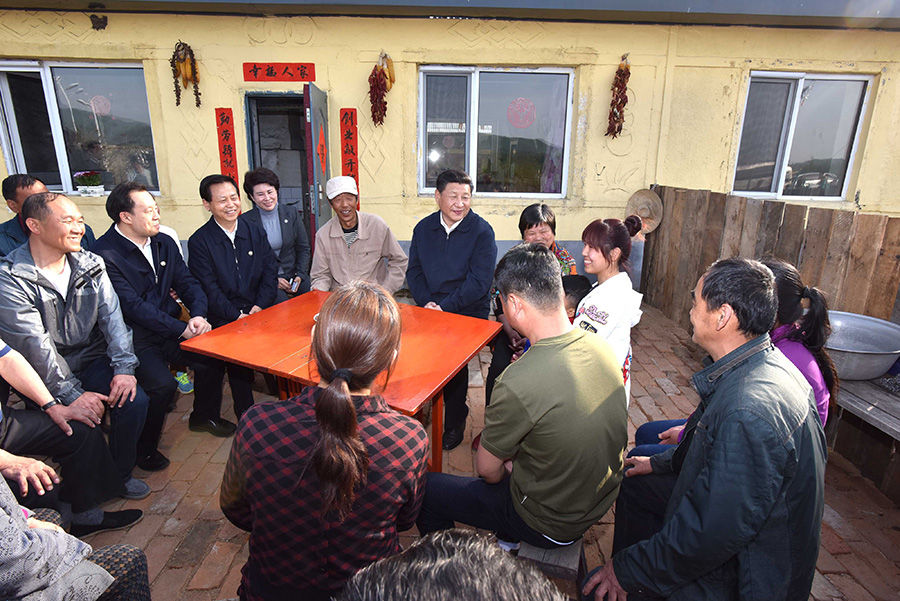 2016年5月23日,習(xí)近平在黑龍江伊春上甘嶺林業(yè)局溪水經(jīng)營所林場職工劉養(yǎng)順家,同一家人和鄰居們親切交談。新華社記者 李濤 攝