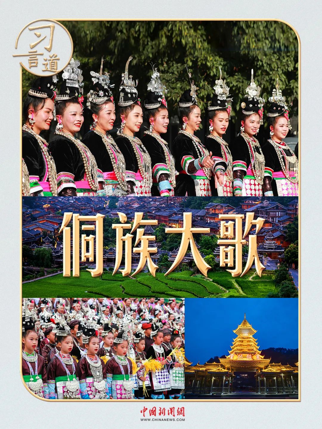 3月17日,習近平總書記來到貴州黎平縣肇興侗寨考察,同鄉(xiāng)親們親切交流。身著民族盛裝的村民,唱起了世代相傳的侗族大歌。