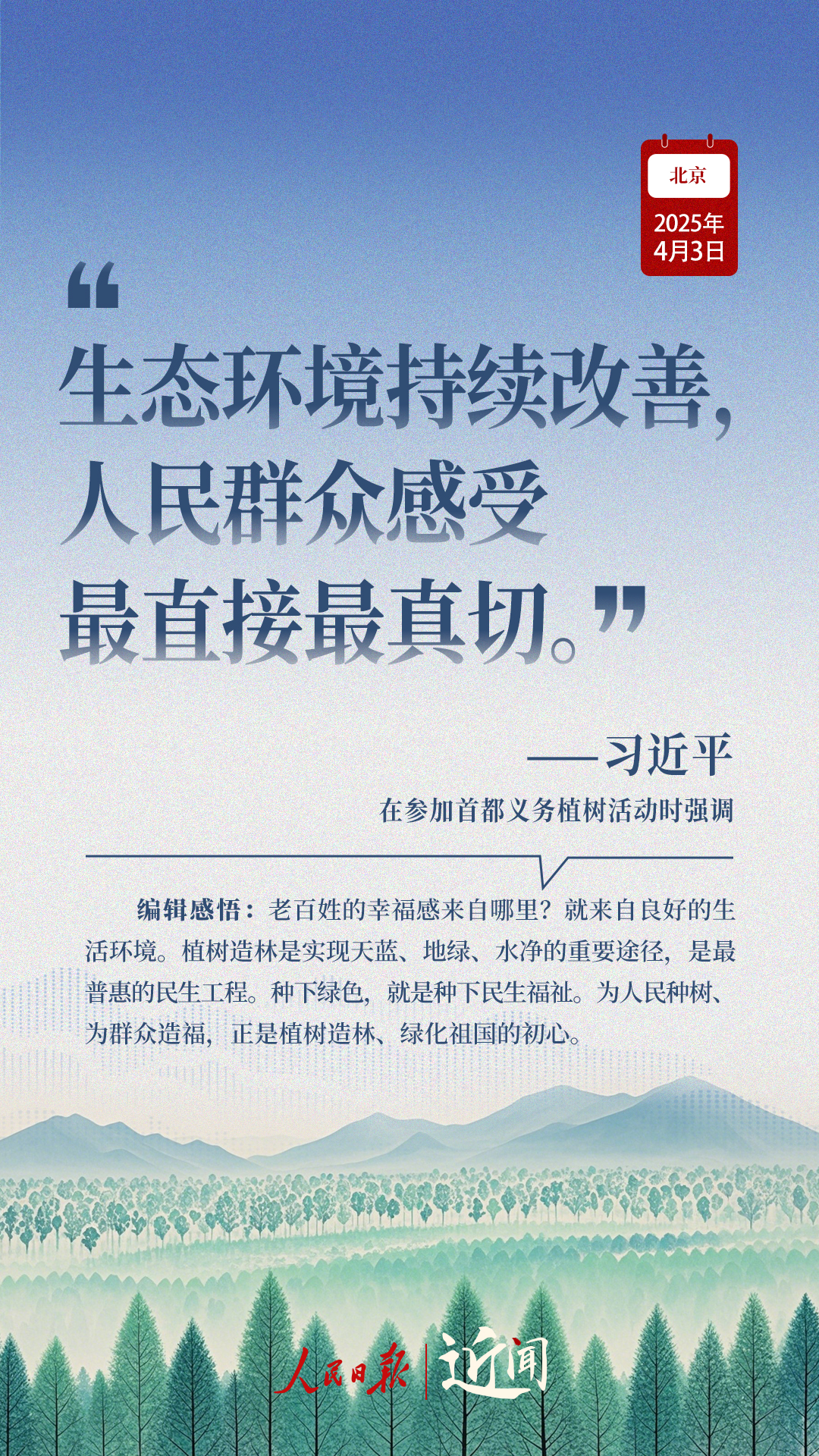 “生態(tài)環(huán)境持續(xù)改善,人民群眾感受最直接最真切?!薄傲x務(wù)植樹是全民行動,要一代接著一代干下去。”在植樹現(xiàn)場,從這些話語讀懂一份堅持、一種情懷。