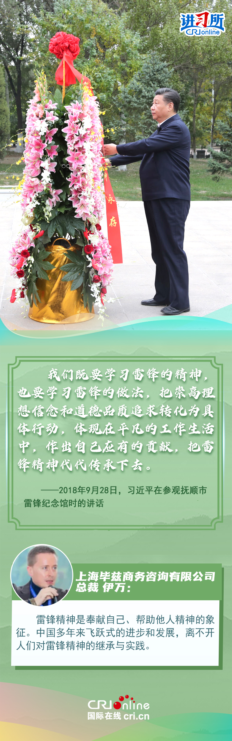 新時代以來,從設(shè)立烈士紀(jì)念日到出臺英雄烈士保護法,再到加強烈士紀(jì)念設(shè)施保護,中國崇尚英雄、學(xué)習(xí)英雄的社會風(fēng)尚贏得國際社會贊譽。在國際人士眼中,中國多年來飛躍式的進(jìn)步和發(fā)展,離不開人們對先輩意志的繼承與實踐。