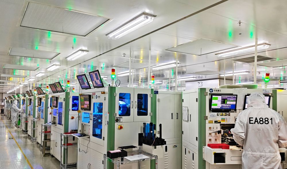 走進(jìn)重慶市天實(shí)精工科技有限公司無塵車間,智能機(jī)器人有條不紊地將芯片送上生產(chǎn)線,經(jīng)過自動(dòng)清洗、表面貼裝、芯片封裝、鏡頭裝聯(lián)等工序,一顆顆攝像頭模組就此誕生。