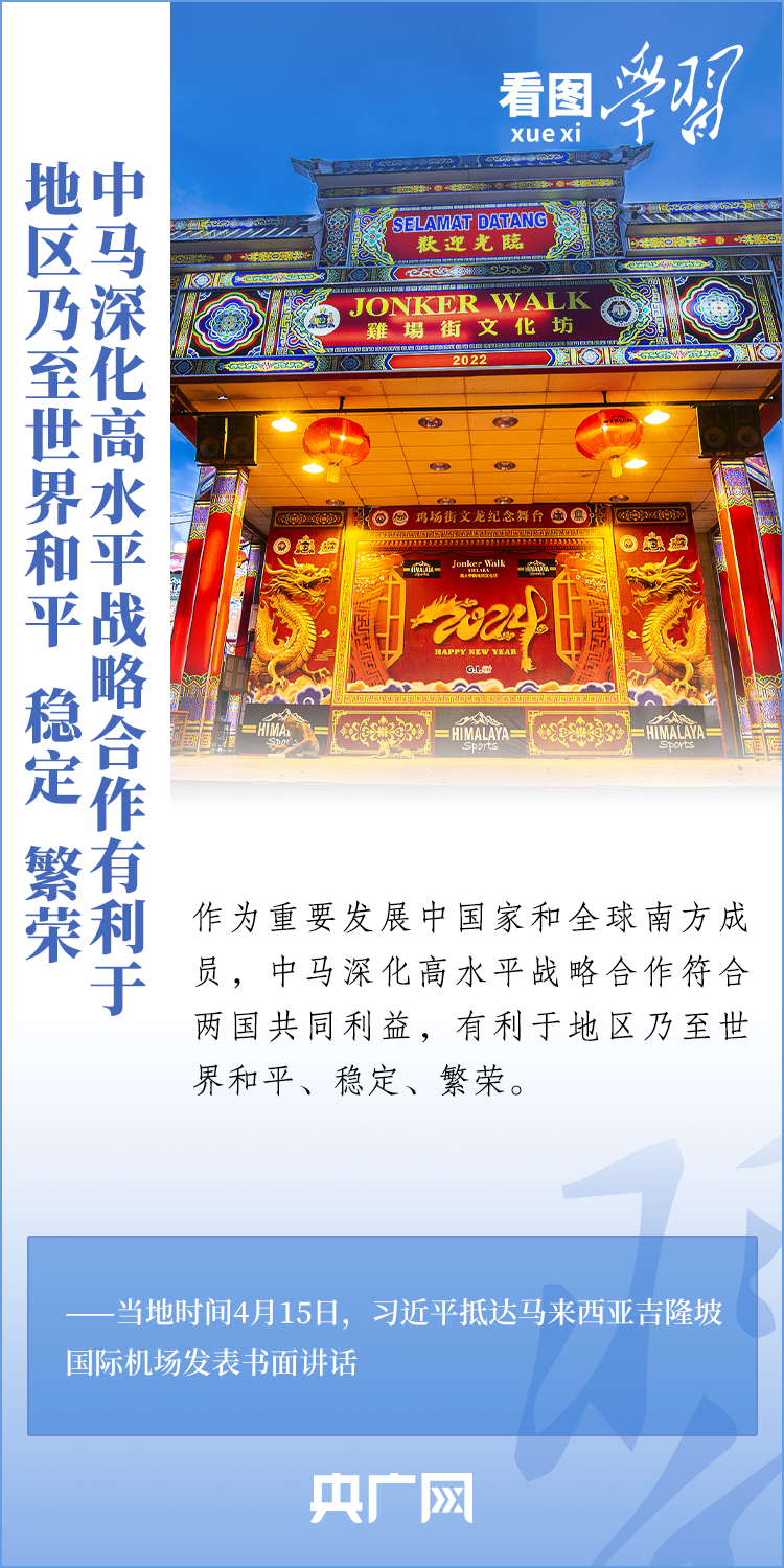 “中國和馬來西亞是好鄰居、好朋友、好伙伴,常來常往、親如一家?!?月15日至17日,國家主席習(xí)近平應(yīng)邀對馬來西亞進(jìn)行國事訪問。訪問期間,習(xí)主席高度評價(jià)中馬關(guān)系,就共同打造高水平戰(zhàn)略性中馬命運(yùn)共同體,譜寫睦鄰友好、團(tuán)結(jié)合作新篇章,開啟中馬關(guān)系新的“黃金50年”擘畫藍(lán)圖和愿景。一起來學(xué)習(xí)!