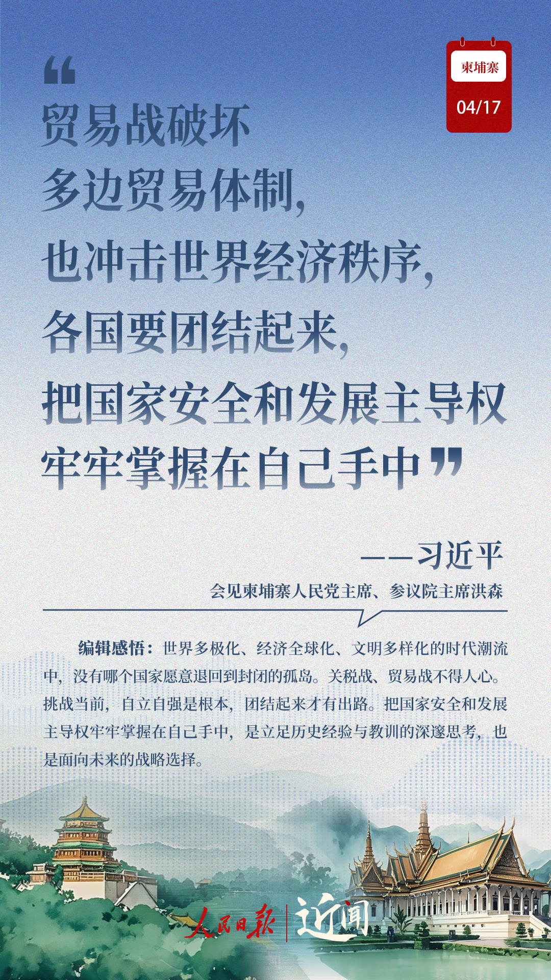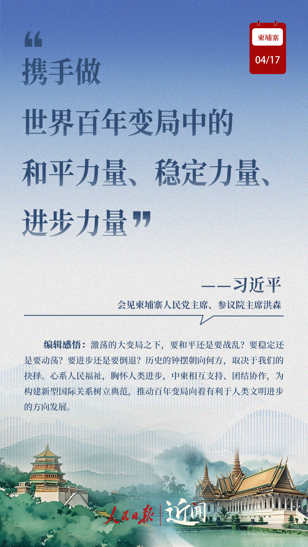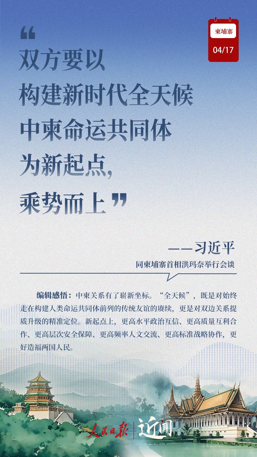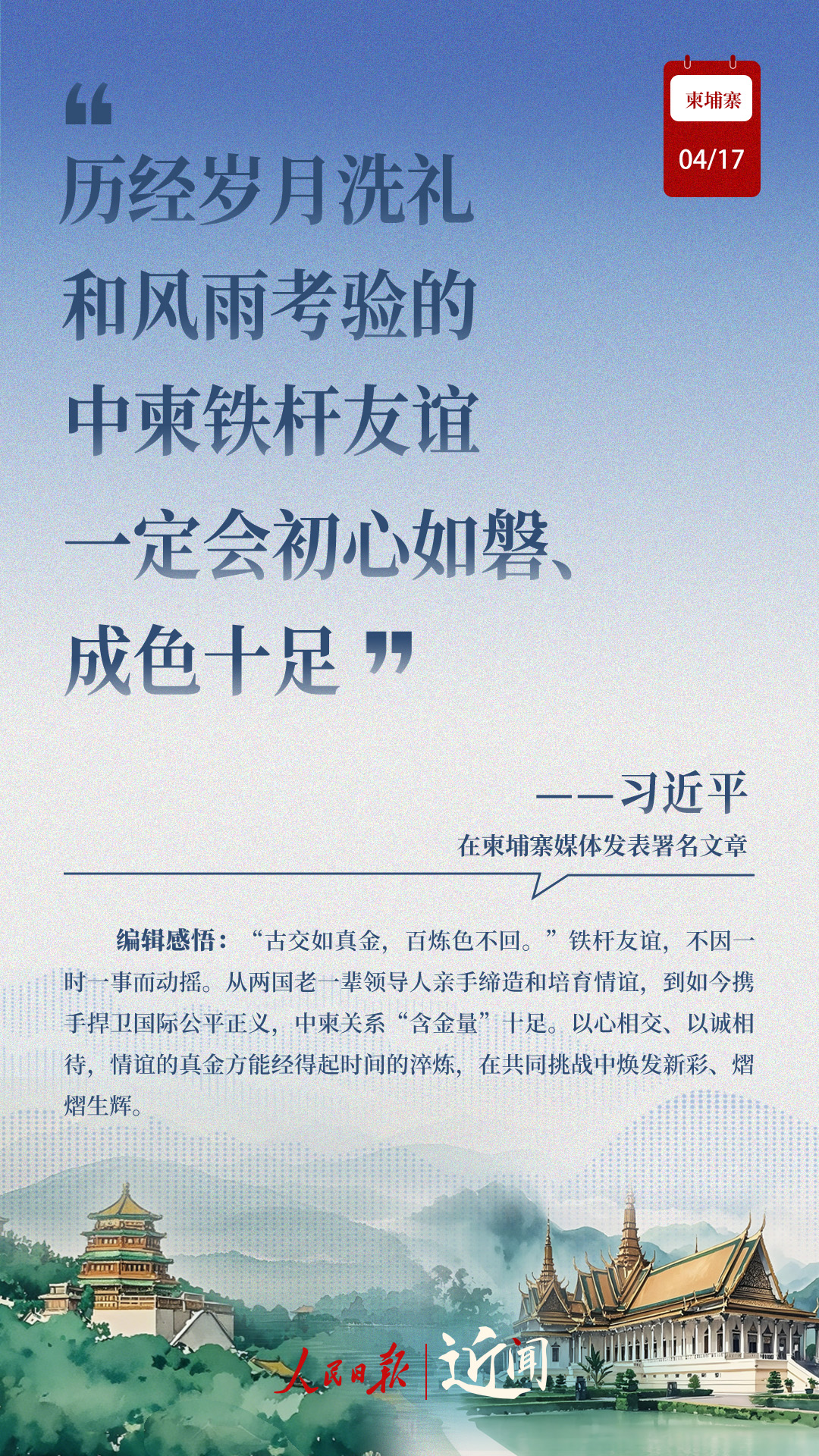 “古交如真金,百煉色不回?!睆膬蓢?guó)老一輩領(lǐng)導(dǎo)人親手締造和培育兩國(guó)友好,到率先構(gòu)建雙邊命運(yùn)共同體,再到構(gòu)建新時(shí)代全天候中柬命運(yùn)共同體,中柬關(guān)系新定位水到渠成。