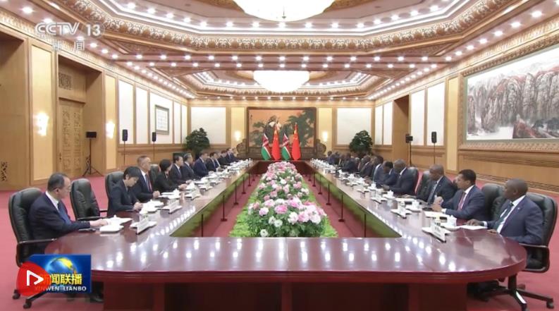 4月24日上午,國家主席習近平在北京人民大會堂同來華進行國事訪問的肯尼亞總統(tǒng)魯托舉行會談。兩國元首一致同意將雙邊關(guān)系定位提升至新時代中肯命運共同體。