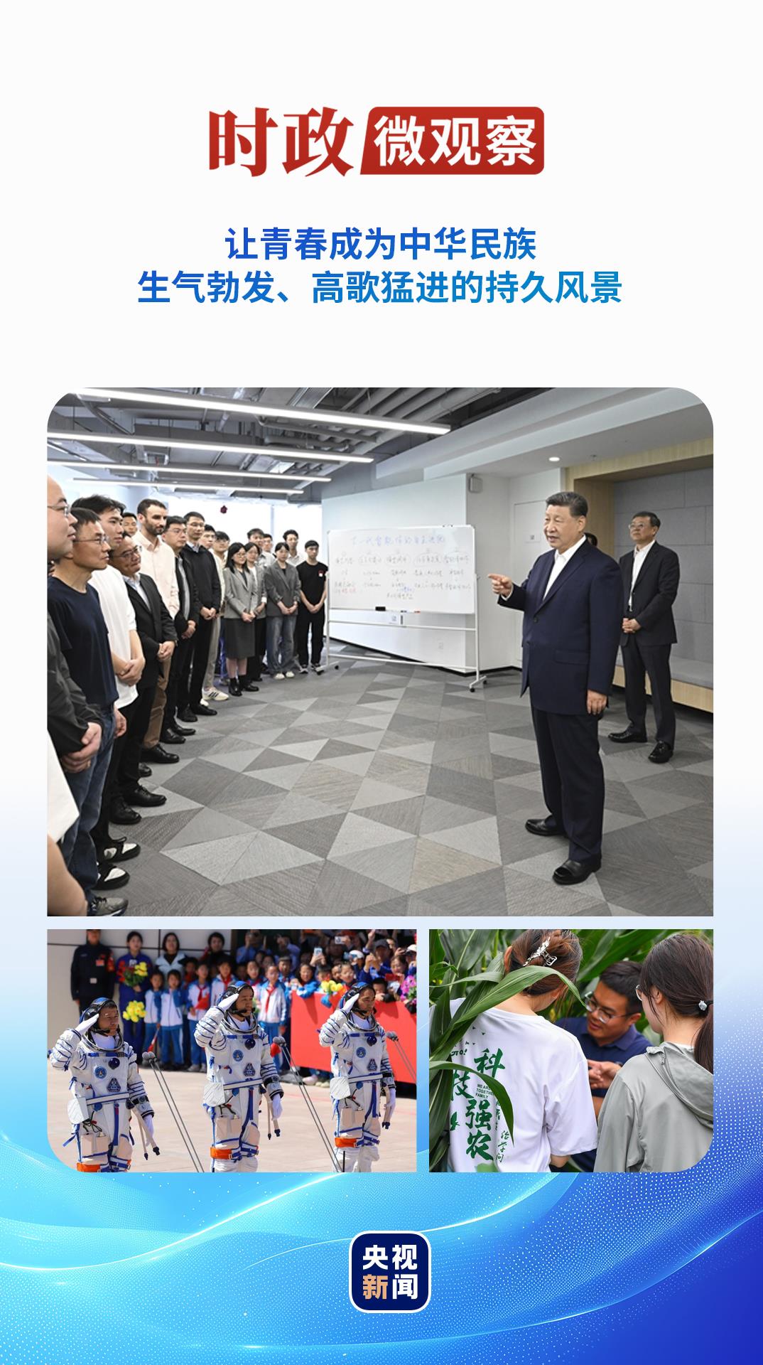 今年五四青年節(jié)前,習(xí)近平總書記再次來到年輕人中間。4月29日,在上海“模速空間”大模型創(chuàng)新生態(tài)社區(qū),總書記同青年創(chuàng)新人才親切交流,勉勵大家“把個人奮斗同國家前途命運緊緊聯(lián)系在一起,跑好歷史的接力棒,在推進中國式現(xiàn)代化的寬廣舞臺上綻放絢麗的青春光彩”。