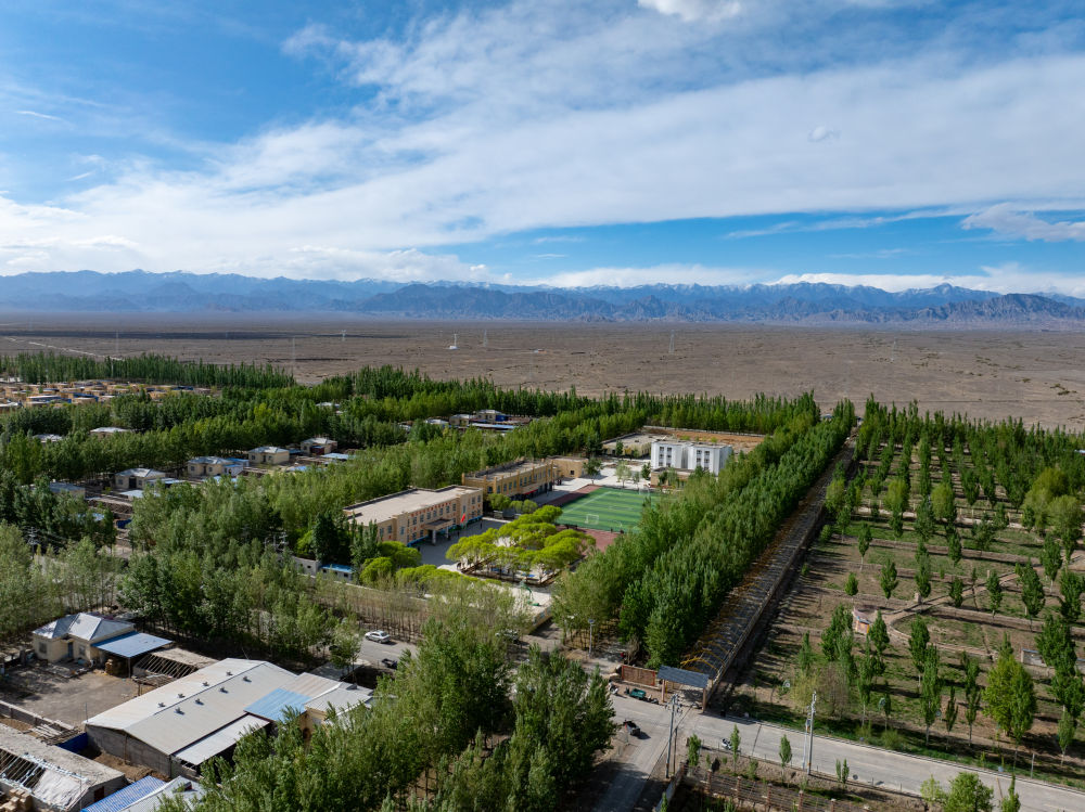 這是4月23日在新疆克州阿圖什市哈拉峻鄉(xiāng)拍攝的謝依特小學(xué)(無(wú)人機(jī)照片)。