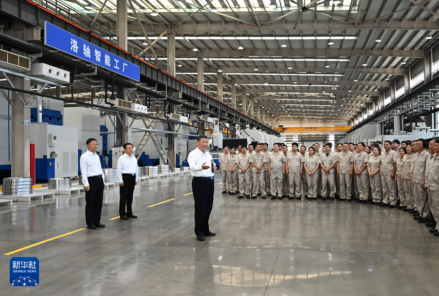 5月19日至20日,中共中央總書記、國家主席、中央軍委主席習近平在河南考察。這是19日下午,習近平在洛陽軸承集團股份有限公司智能工廠考察。新華社記者 謝環(huán)馳 攝