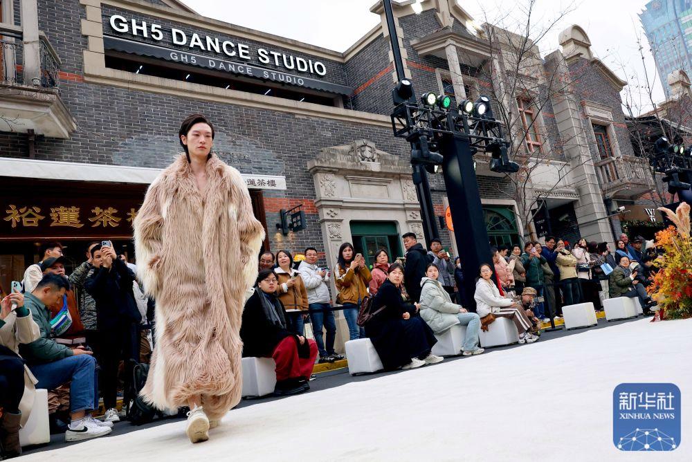 2024年12月7日,模特在“海·派張園時尚文化周”中國青年設(shè)計師時裝秀上展示設(shè)計師服裝作品。時裝秀以張園建筑主色調(diào)與設(shè)計線條為靈感,百年石庫門建筑群落為背景,將茂名北路作為T臺秀場,獨(dú)具上海特色。