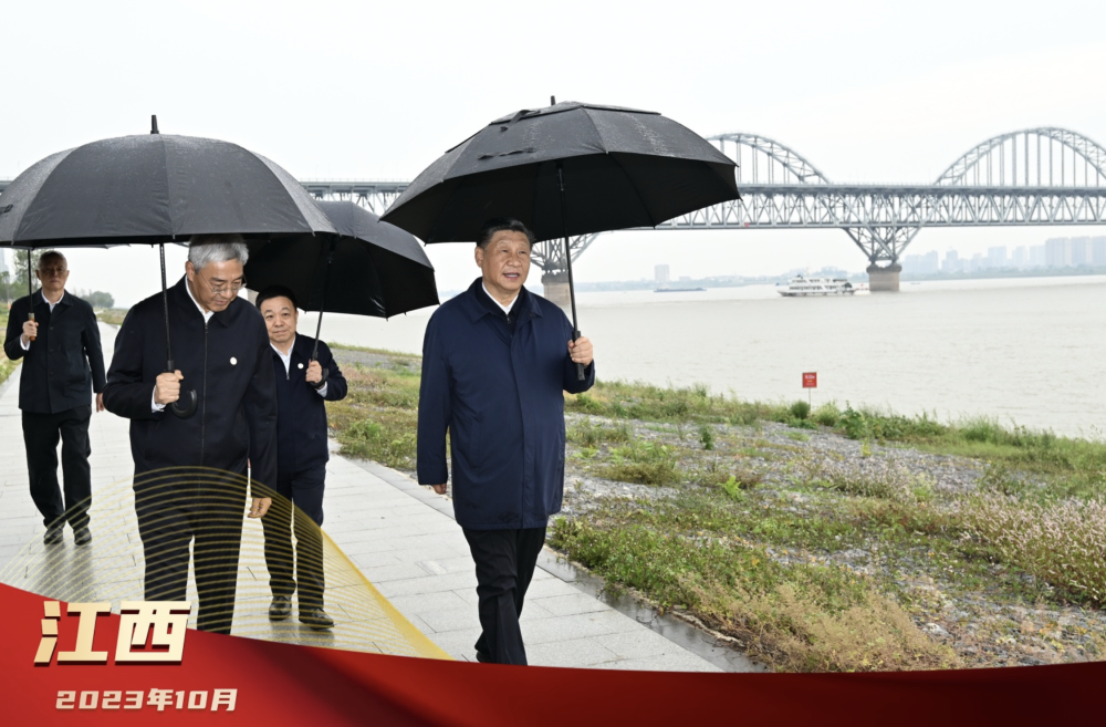2023年10月10日下午,習(xí)近平總書記在江西九江市考察,冒雨在江邊察看,了解當?shù)亻L江國家文化公園建設(shè)、長江岸線生態(tài)修復(fù)等情況。10月12日,總書記在進一步推動長江經(jīng)濟帶高質(zhì)量發(fā)展座談會上回顧長江經(jīng)濟帶發(fā)展歷程,感慨:“做就要做好,堅定做下去。篤行不怠,一以貫之,久久為功。”