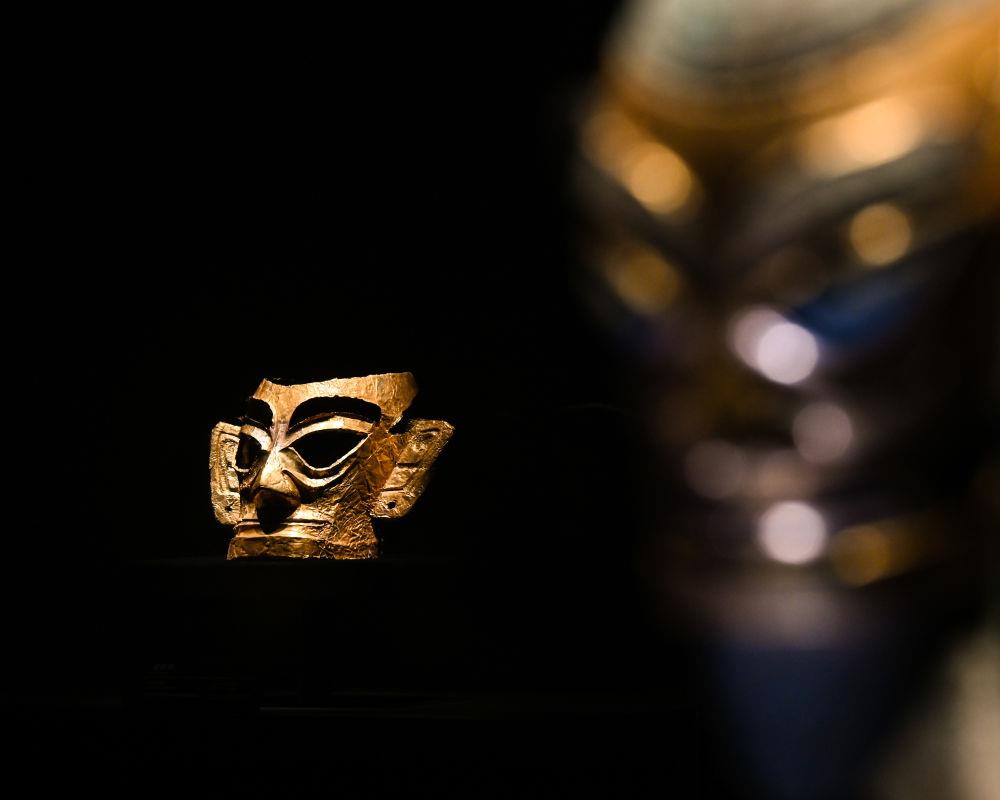 三星堆博物館新館展出的金面具