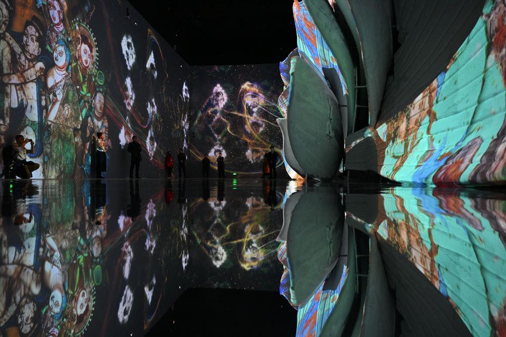 中國國家博物館舉辦的“華彩萬象——石窟藝術(shù)沉浸體驗(yàn)”