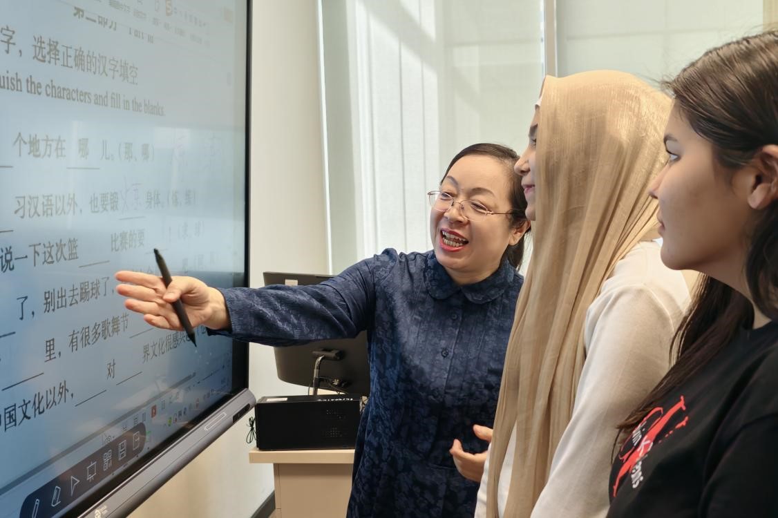 談及近一年的收獲,分校學(xué)生麗瑪向記者唱起了這樣一首歌——“你問我愛你有多深,我愛你有幾分……”麗瑪說,自己以前完全不了解中國文化,中文最多也只知道一句“你好”。在分校的學(xué)習(xí)讓她對中文有了初步了解,也堅定了未來繼續(xù)學(xué)習(xí)、深耕這一專業(yè)的決心。