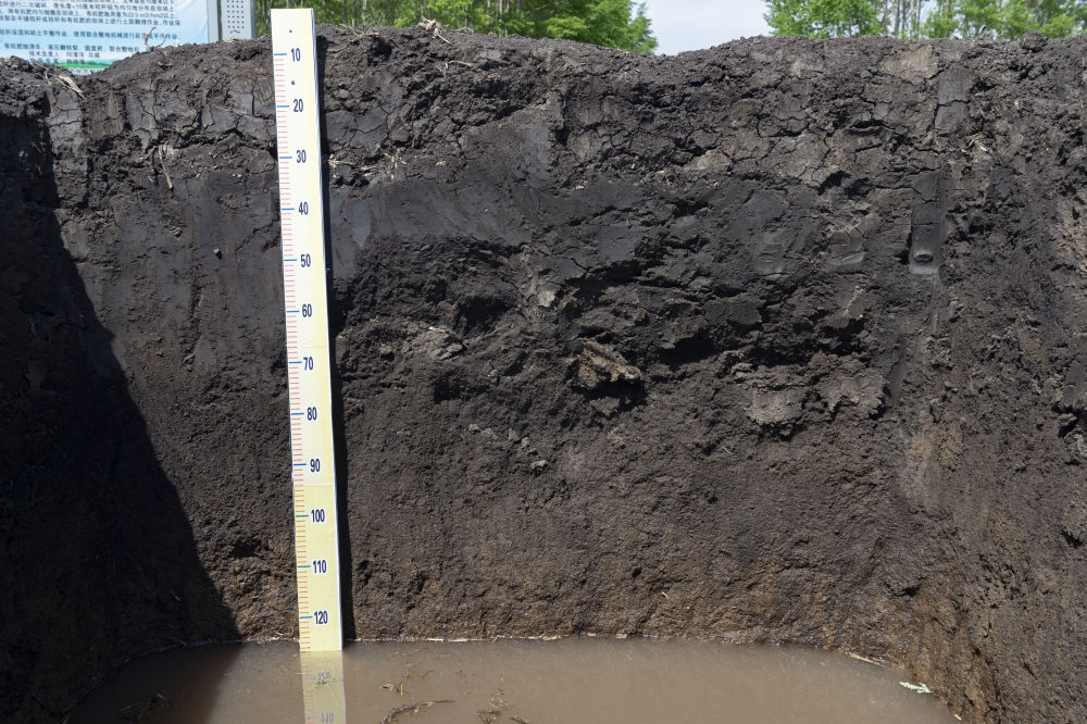 黑龍江省海倫市前進(jìn)鎮(zhèn)自新村農(nóng)業(yè)科技示范基地內(nèi)一處用來(lái)觀測(cè)黑土層厚度的土壤剖面(2022年5月23日攝)。