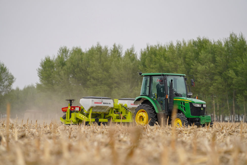 經(jīng)過(guò)多年試驗(yàn)和推廣,東北逐步形成以秸稈覆蓋、少耕免耕為特點(diǎn)的吉林“梨樹模式”等多種行之有效的保護(hù)性耕作模式。這是2020年5月7日,吉林省四平市梨樹縣的農(nóng)民駕駛免耕播種機(jī)播種玉米。