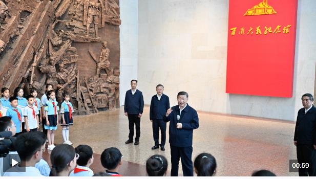 7日下午,習(xí)近平總書記來到山西省陽泉市,向百團(tuán)大戰(zhàn)烈士敬獻(xiàn)花籃,參觀百團(tuán)大戰(zhàn)紀(jì)念館。在紀(jì)念館大廳,習(xí)近平同青少年學(xué)生和紀(jì)念館工作人員親切交流。他對(duì)大家說,今天來到這里有特殊意義。七七事變是全民族抗戰(zhàn)的開始,中國共產(chǎn)黨是全民族抗戰(zhàn)的中流砥柱,百團(tuán)大戰(zhàn)讓全世界看到了中國共產(chǎn)黨和中國人民抗戰(zhàn)的意志和力量。我們堅(jiān)持14年抗戰(zhàn),作出了巨大犧牲。前事不忘,后事之師。孩子們要爭(zhēng)做民族的脊梁,一定要把我們國家建得強(qiáng)盛起來,要為全世界的和平作貢獻(xiàn)。希望寄托在你們身上,未來是屬于你們的。希望你們好好努力、奮發(fā)圖強(qiáng),做一個(gè)堂堂正正、光榮自豪的中國人。