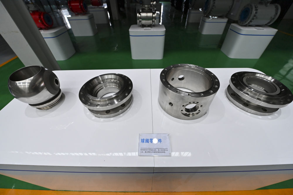這是7月7日在陽(yáng)泉閥門股份有限公司裝配成品車間拍攝的球閥零部件。