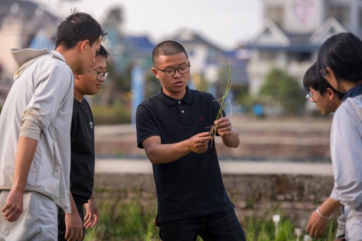 今年37歲的黃光福是云南大學(xué)農(nóng)學(xué)院的一名青年教師,同時(shí)也是云南大學(xué)在云南省勐海縣勐遮鎮(zhèn)曼恩村成立的多年生稻科技小院的負(fù)責(zé)人。多年來,他帶領(lǐng)學(xué)生扎根田間,進(jìn)行技術(shù)攻關(guān)。團(tuán)隊(duì)利用長(zhǎng)雄野生稻特有的地下莖無性繁殖能力,成功培育出“云大25”“云大107”等新品種,突破性地實(shí)現(xiàn)水稻“一次栽種、連續(xù)收割”,讓“割韭菜般收稻子”的農(nóng)業(yè)成果從實(shí)驗(yàn)室走向田間地頭。這是2025年2月27日,青年教師黃光福(中)在試驗(yàn)田間給學(xué)生授課。
