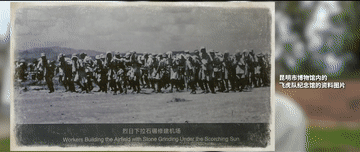 1942年日軍截斷滇緬公路后,美國空軍開辟“駝峰航線”,為中國提供軍用民用物資,為此迫切需要在短時間內(nèi)修建大量的機場。為了配合飛虎隊作戰(zhàn),中國人民在沒有重型機械設(shè)備的情況下,用汗水和鮮血筑成了一條條跑道。