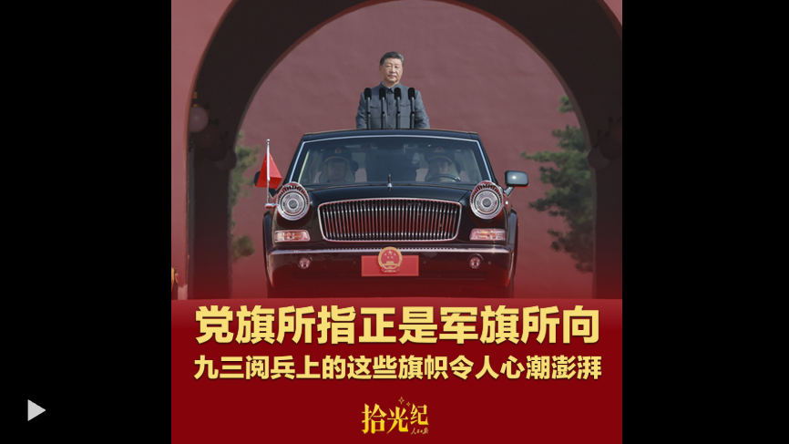 習(xí)近平向黨旗、國旗、軍旗行注目禮、劉老莊連沿用著當(dāng)年的戰(zhàn)旗樣式……九三閱兵上的這些旗幟令人心潮澎湃。