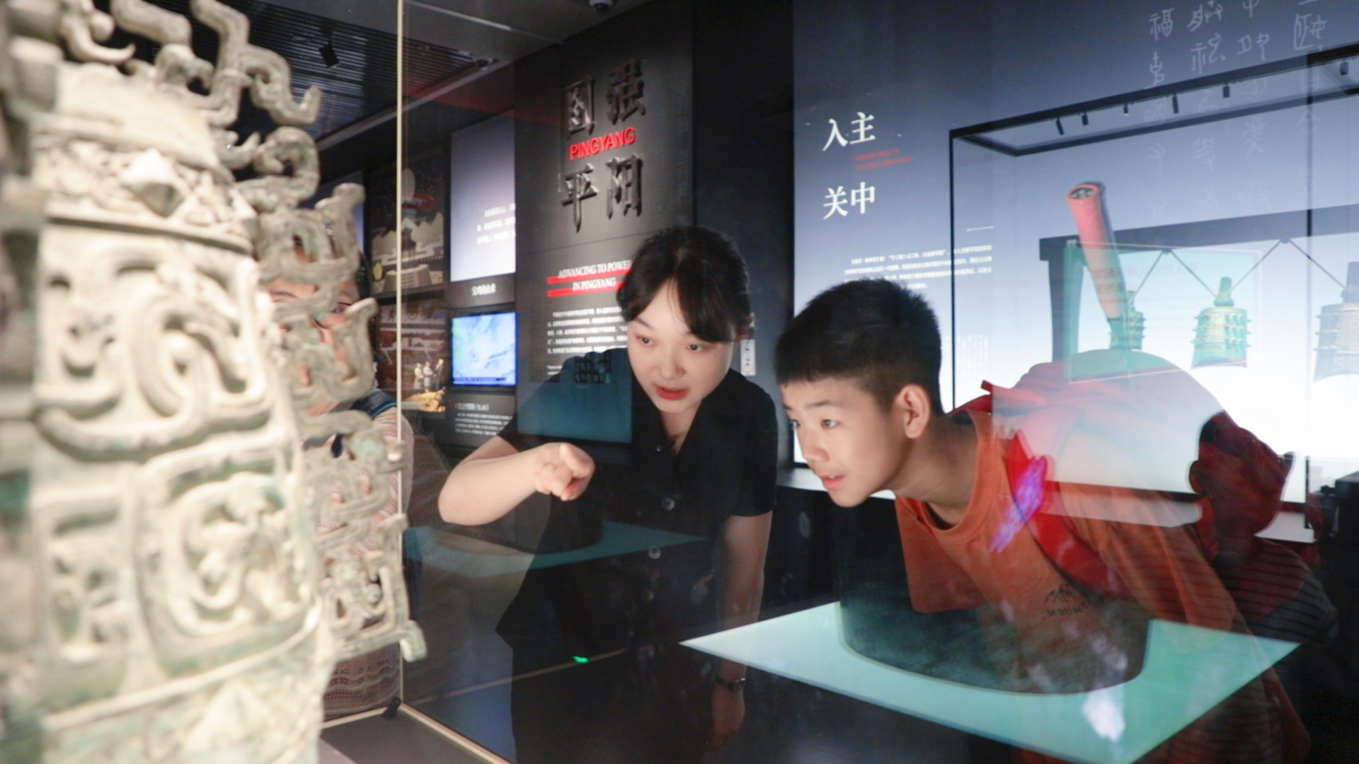 何尊等許多青銅器的銘文刻在器物內(nèi)部。為了方便參觀者鑒賞,寶雞青銅器博物院引入投影和三維動畫技術(shù),讓觀眾不僅能清晰看見文物,還能“走進”青銅器所承載的文明歷史記憶中。