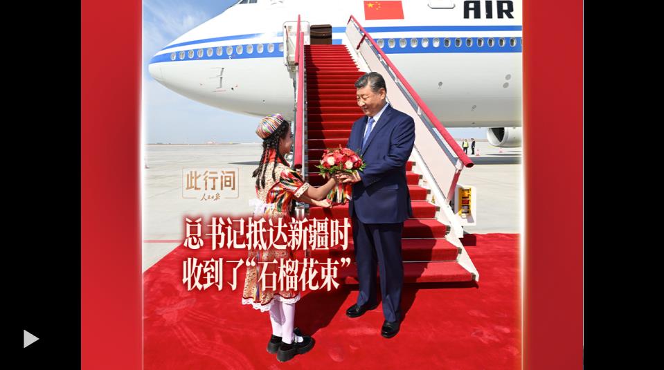 習(xí)近平率中央代表團(tuán)23日下午乘專機(jī)抵達(dá)烏魯木齊,出席新疆維吾爾自治區(qū)成立70周年慶?;顒?,新疆各族群眾在機(jī)場熱烈歡迎??倳浭盏降幕ㄊ?,裝點了美麗的石榴。如今,“石榴籽”的妙喻為人熟知,民族團(tuán)結(jié)觀念深入人心。