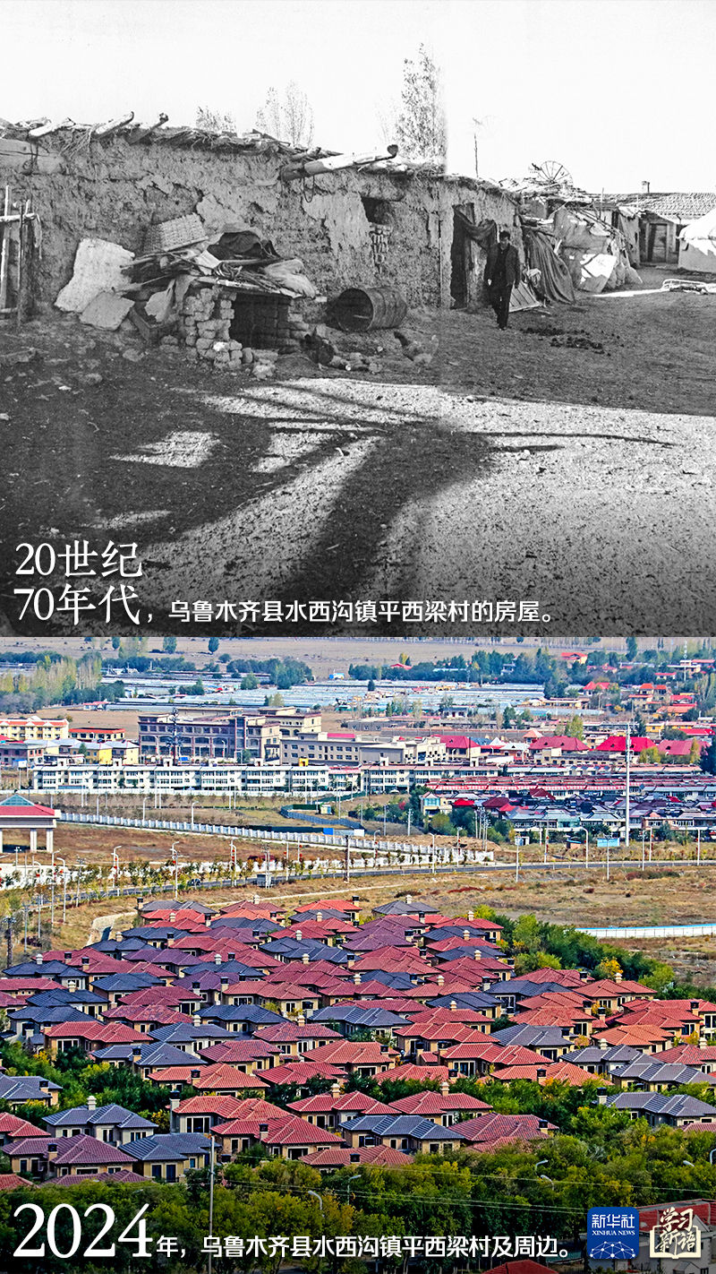 我們選取成就展上的一組照片,通過新舊對(duì)比,用鮮活的事實(shí)展現(xiàn)新疆取得的輝煌成就,一起感受翻天覆地的發(fā)展變化。
