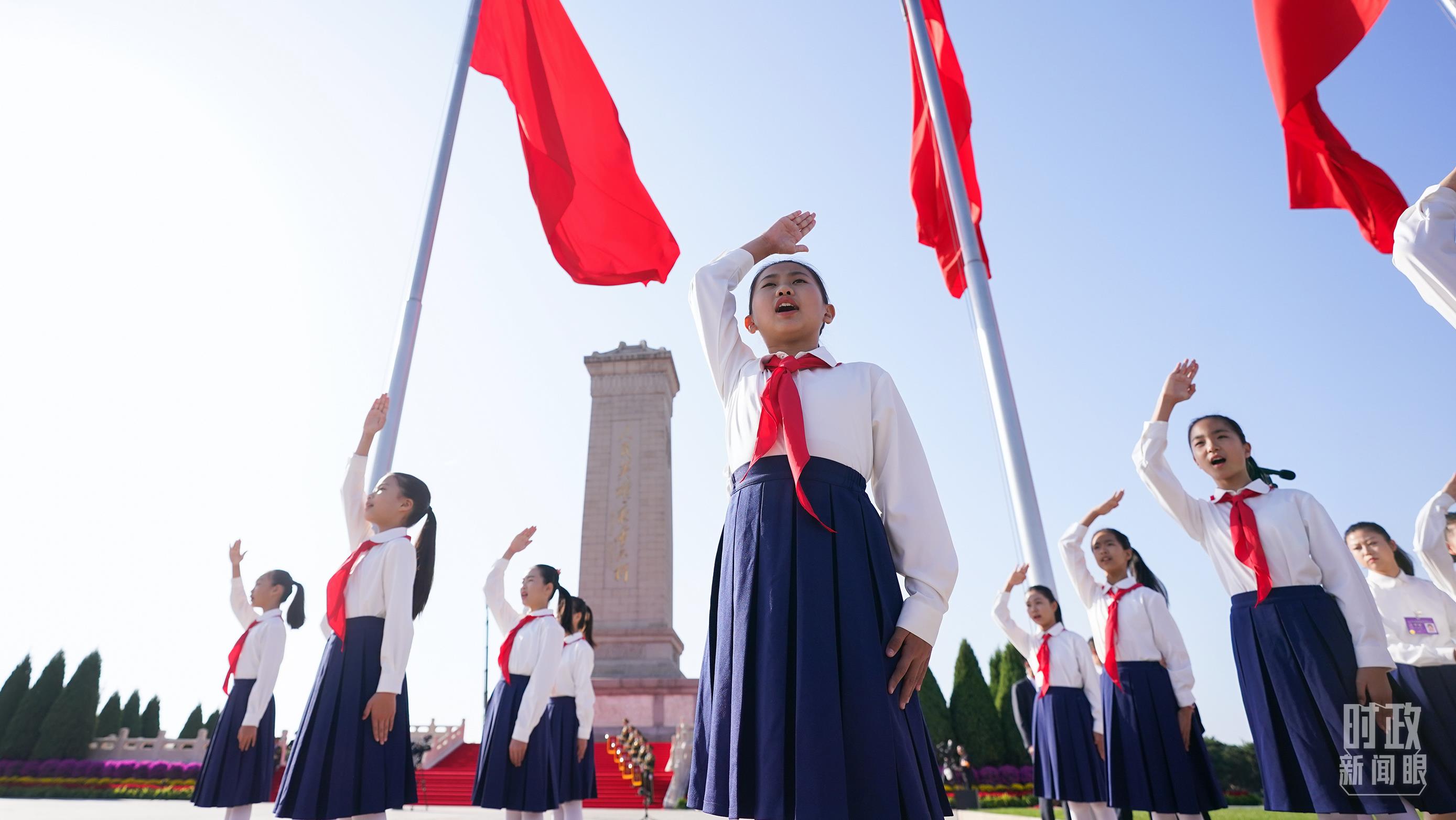 參加烈士紀(jì)念日向人民英雄敬獻(xiàn)花籃儀式的少年兒童。(總臺記者李晉拍攝)